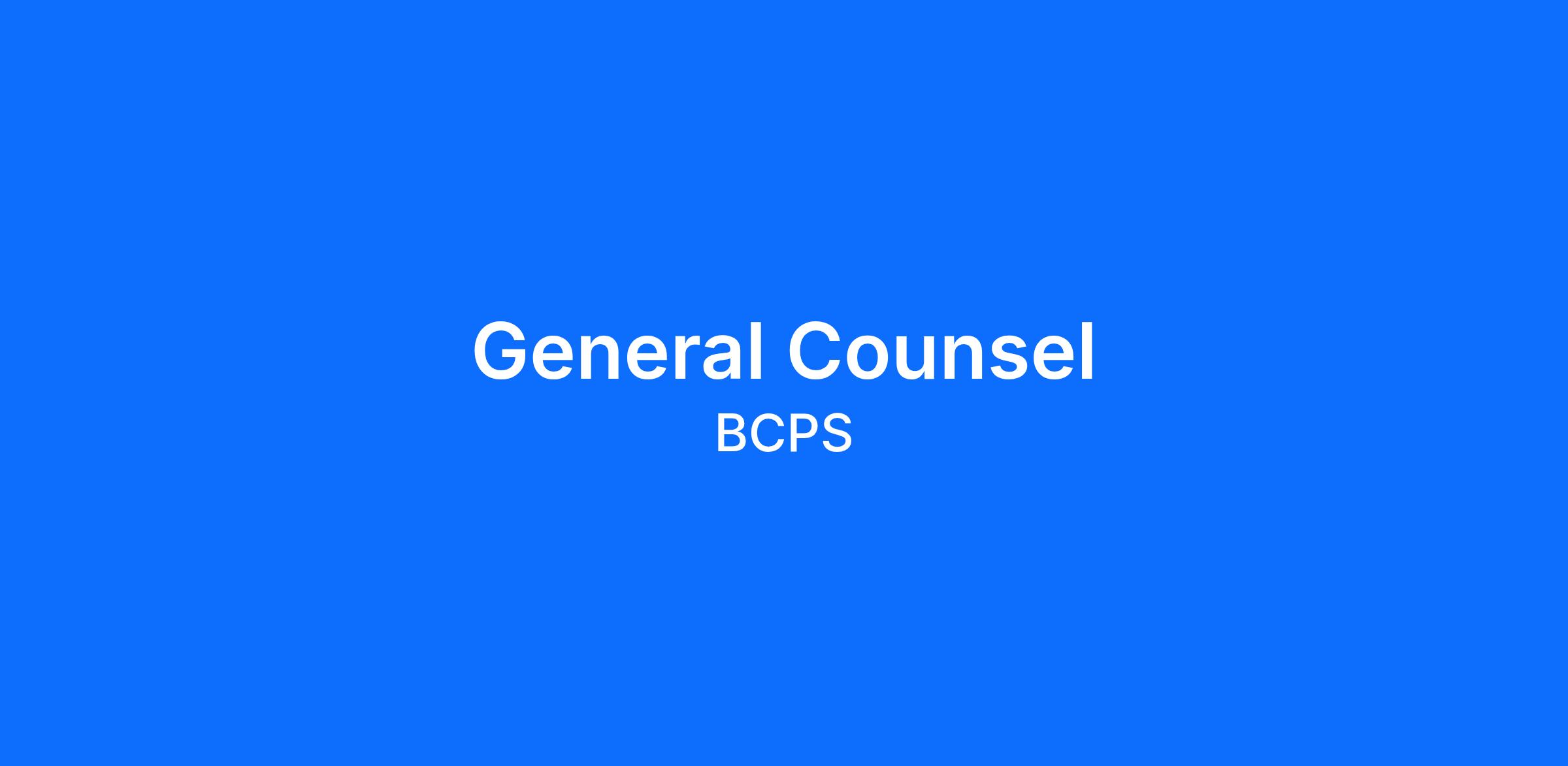 - Serves as the Baltimore County Public Schools (BCPS) system’s primary legal advisor.