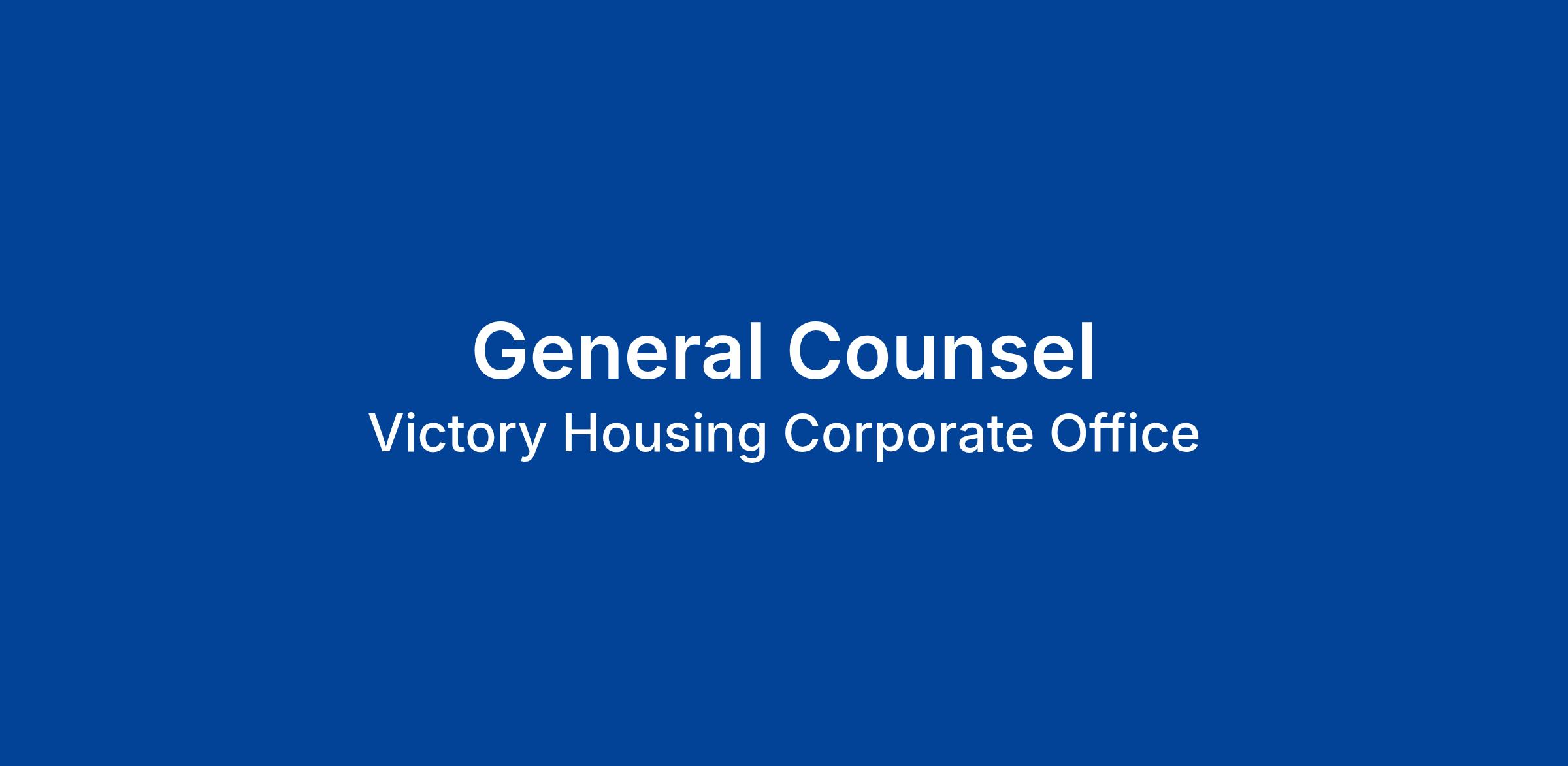 The General Counsel provides legal advice and counsel to Victory Housing, Inc. and its affiliates (“Victory Housing”). This senior leadership role addresses complex and diverse legal matters affecting the organization, its employees, and its communities, ensuring legal compliance and identifying and reducing risk. The General Counsel also serves as Secretary, maintaining corporate records. Areas of guidance include affordable housing, contracts, property, land use, employment, nonprofit organizations, public policy, and related matters. The General Counsel will oversee outside counsel as needed and partner across departments to resolve legal issues.