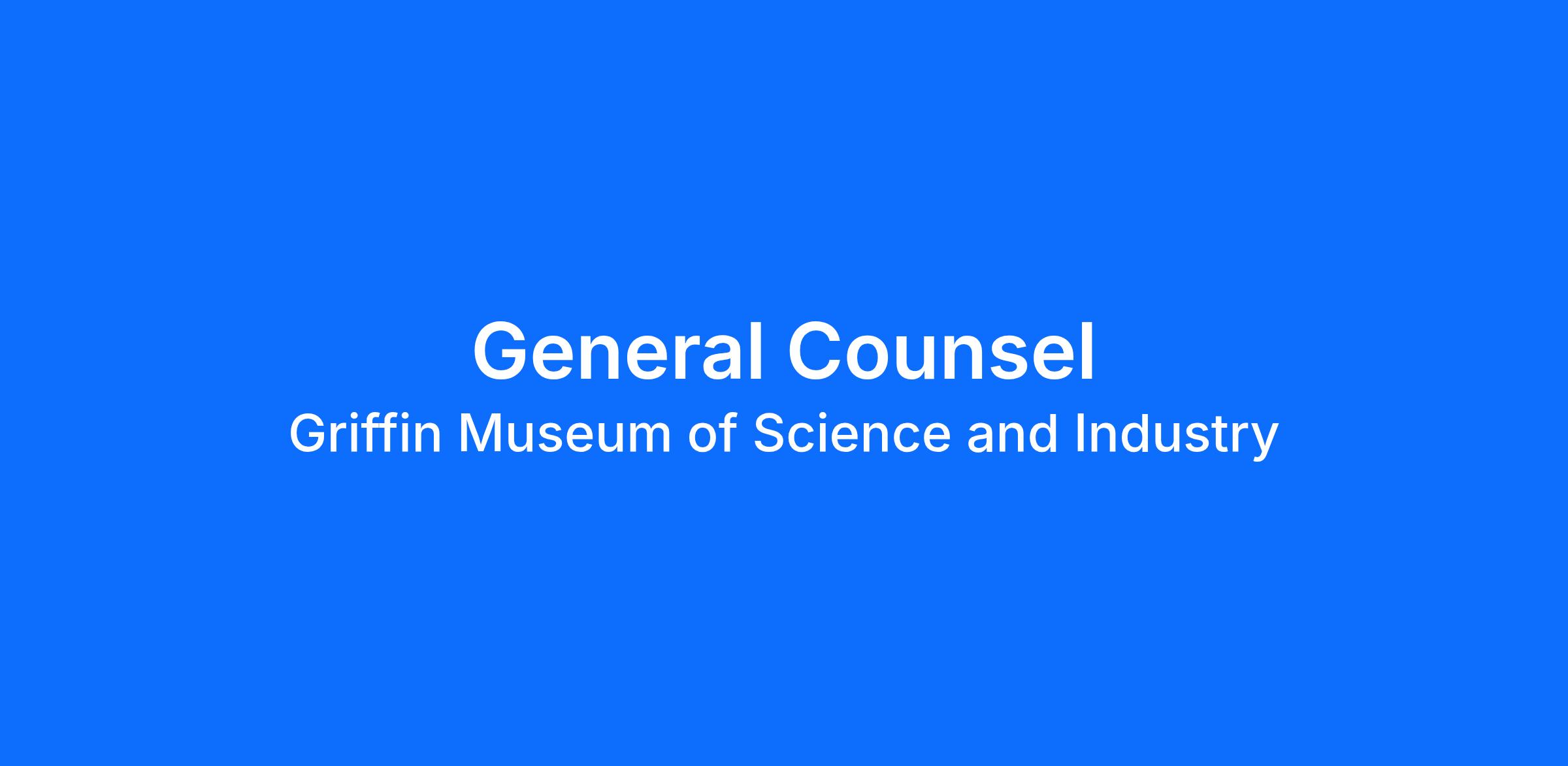 The Job: The General Counsel leads the Museum's legal function as its sole in-house attorney, offering a unique opportunity for broad responsibility, meaningful impact, and direct engagement with senior leadership and the Board of Trustees. The position combines hands-on legal work with strategic judgement and leverages outside counsel thoughtfully to enhance internal capabilities.