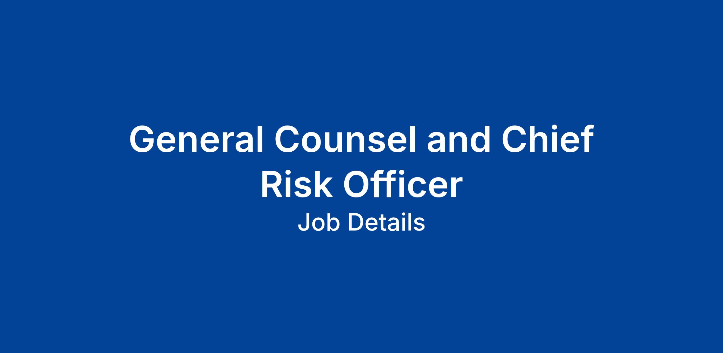 For more information read the full Role Description: General Counsel and Chief Risk Officer