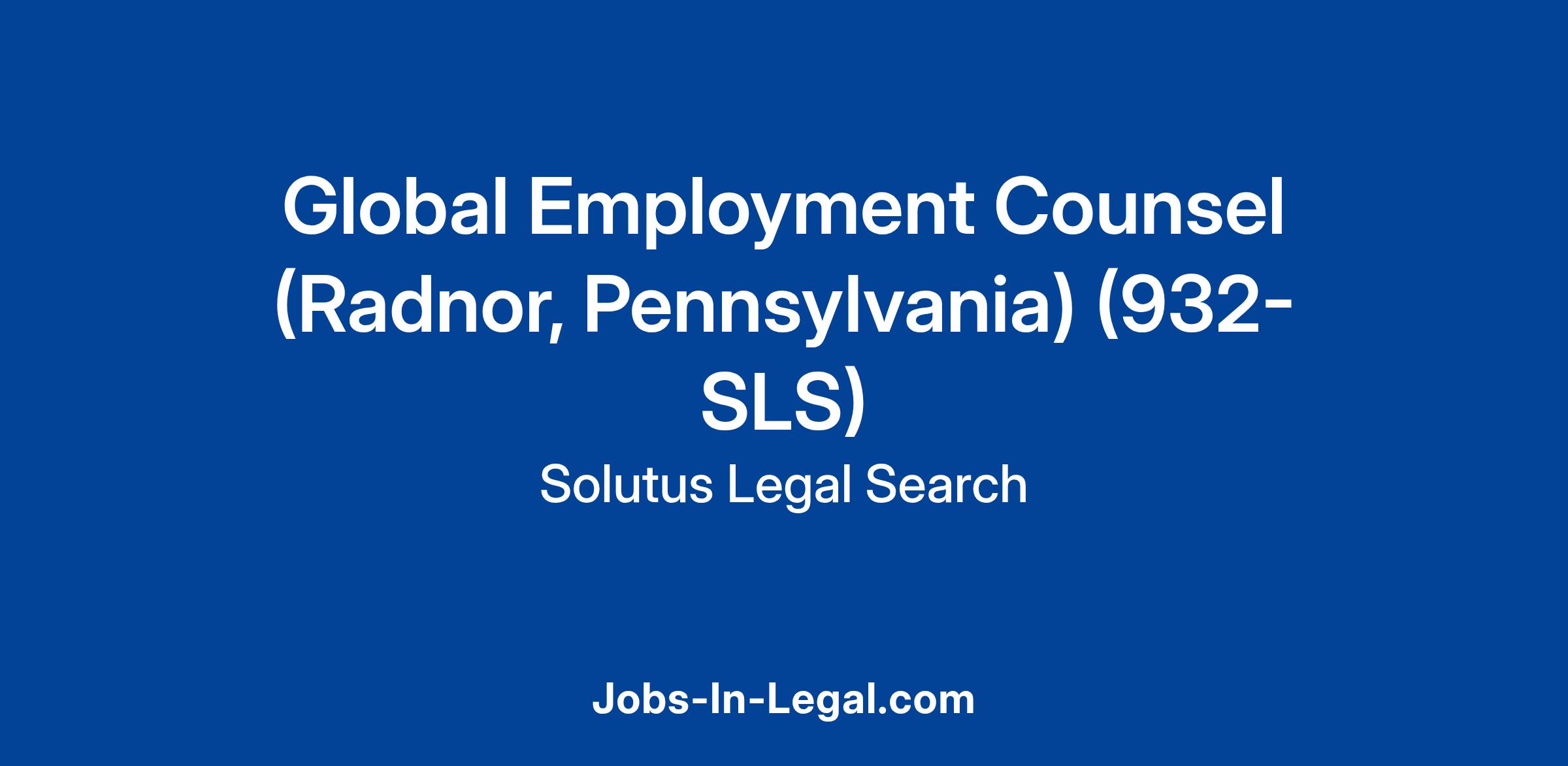 Our client, a leading global specialty chemicals company, has exclusively retained Solutus Legal Search to assist its executives in hiring a sophisticated attorney to serve as Global Employment Counsel. This role will be located in the Company’s U.S. headquarters in Radnor, PA, with 5x per week in office required. This attorney will serve a critical role in supporting the company and its global parent with various legal issues focusing on employment and labor law matters. The Global Employment Counsel will manage sophisticated legal matters while interacting with senior business leadership and managers around the company. This role will report to the General Counsel.