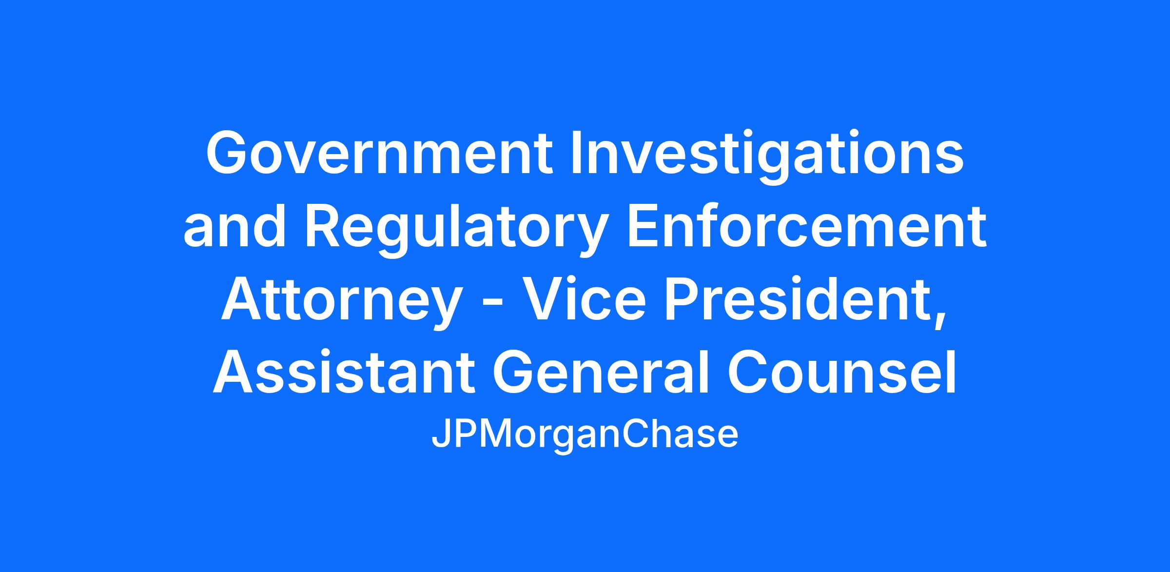 As a Government Investigations & Regulatory Enforcement Attorney – Vice President, Assistant General Counsel in our Government Investigations & Regulatory Enforcement team, you will represent JPMorgan Chase & Co. in connection with regulatory inquiries and government enforcement matters, internal reviews and investigations. You will spend your day learning about our products and services, collecting and reviewing documents, conducting interviews, updating stakeholders, researching legal topics, and drafting responses to regulatory requests. You will work independently and with external counsel to respond to document and information requests from equities and futures and options exchanges, FINRA and other self-regulatory organizations, swap execution facilities, state securities regulators and government agencies such as the SEC. You will act as a trusted advisor to our compliance, controls, and business partners in connection with a broad range of other matters and engage with regulators on a regular basis. If you are intellectually curious and have a passion for driving solutions you may be the perfect fit for our team.