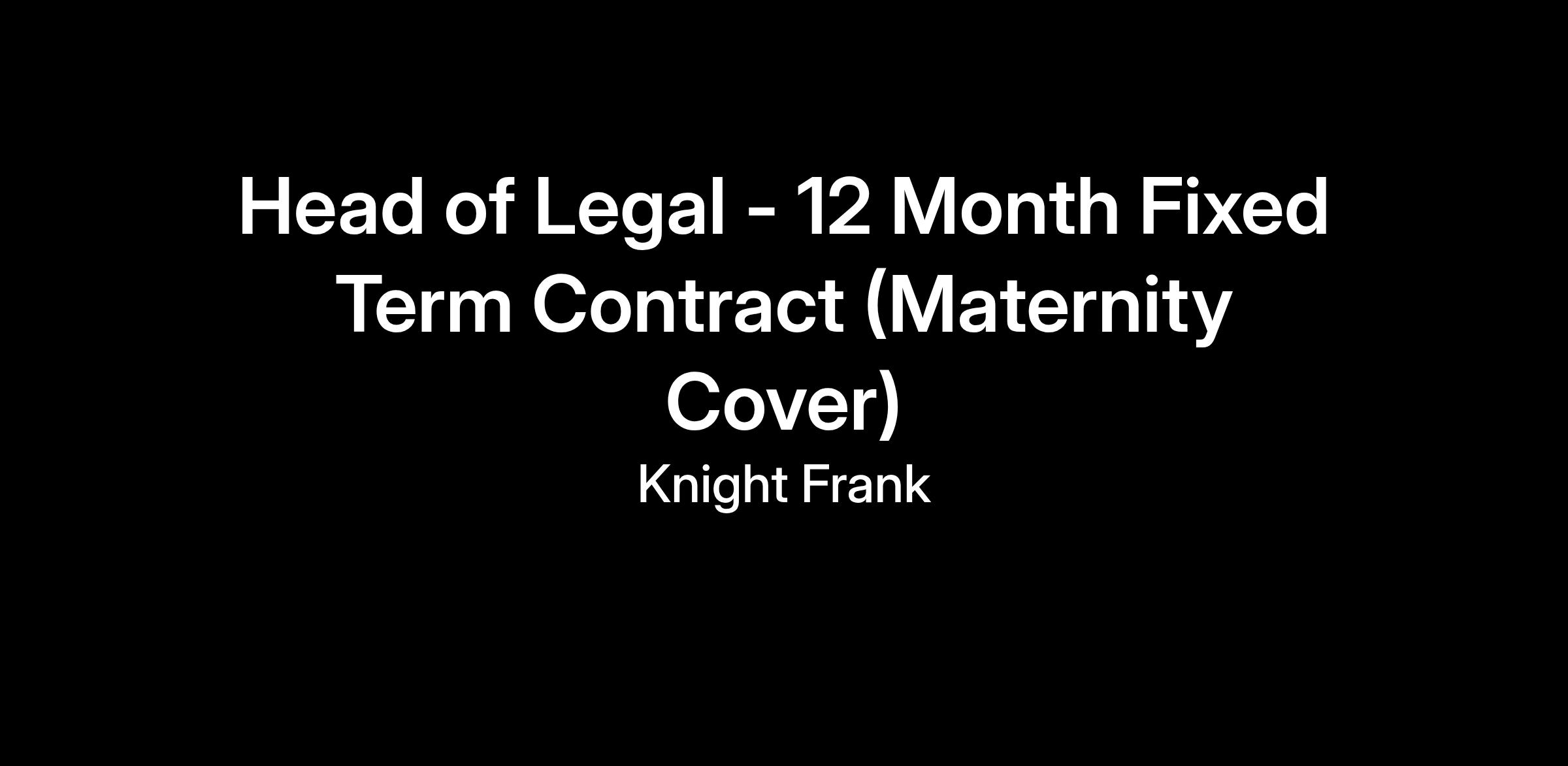 Knight Frank is looking to hire a Head of Legal to join their Head Office in Baker Street. This is an exciting opportunity offered on a 12 Month Fixed Term Contract (Maternity Cover).