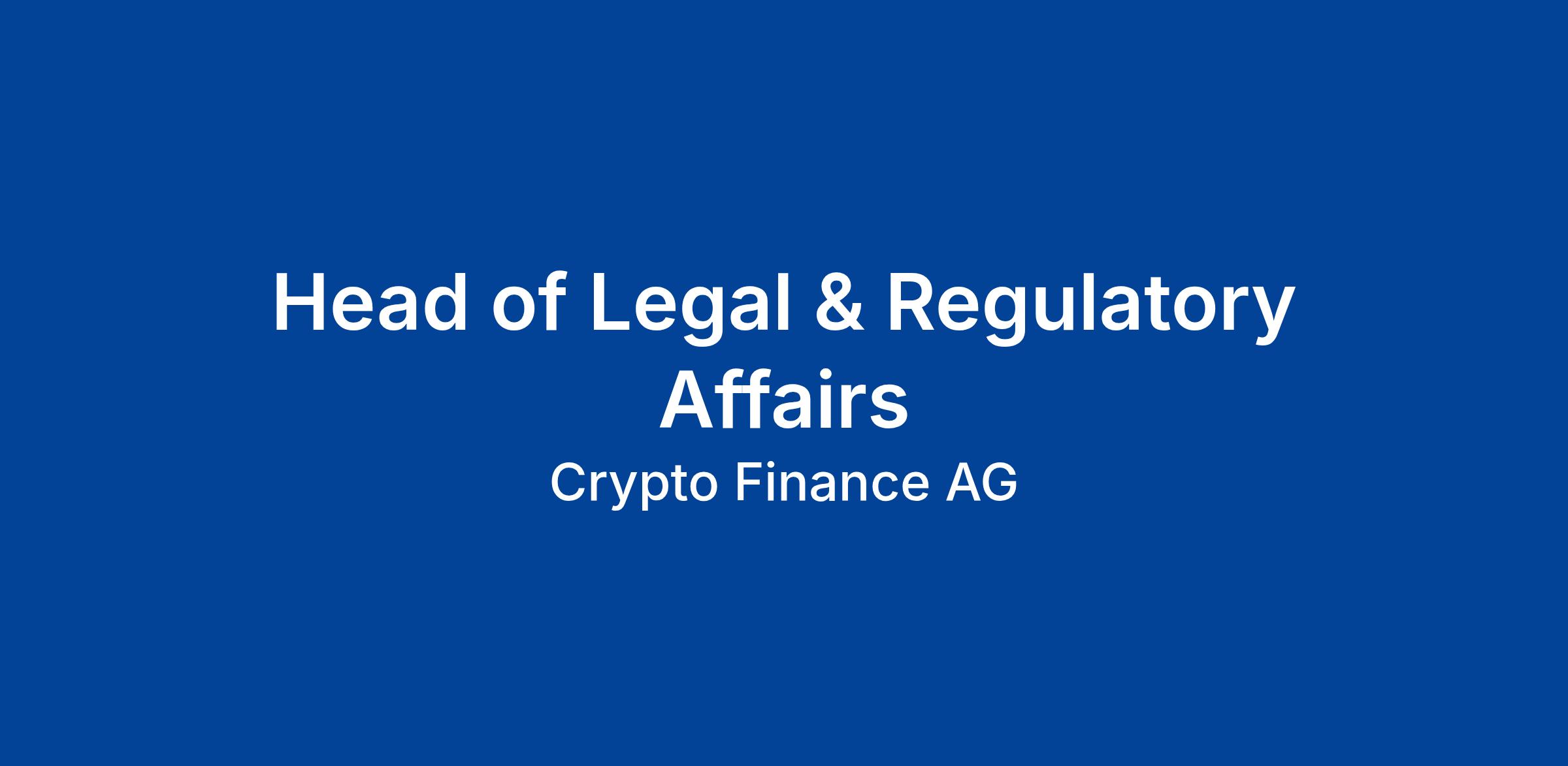 - Take on the lead for the Legal & Regulatory Affairs team in the Crypto Finance Group