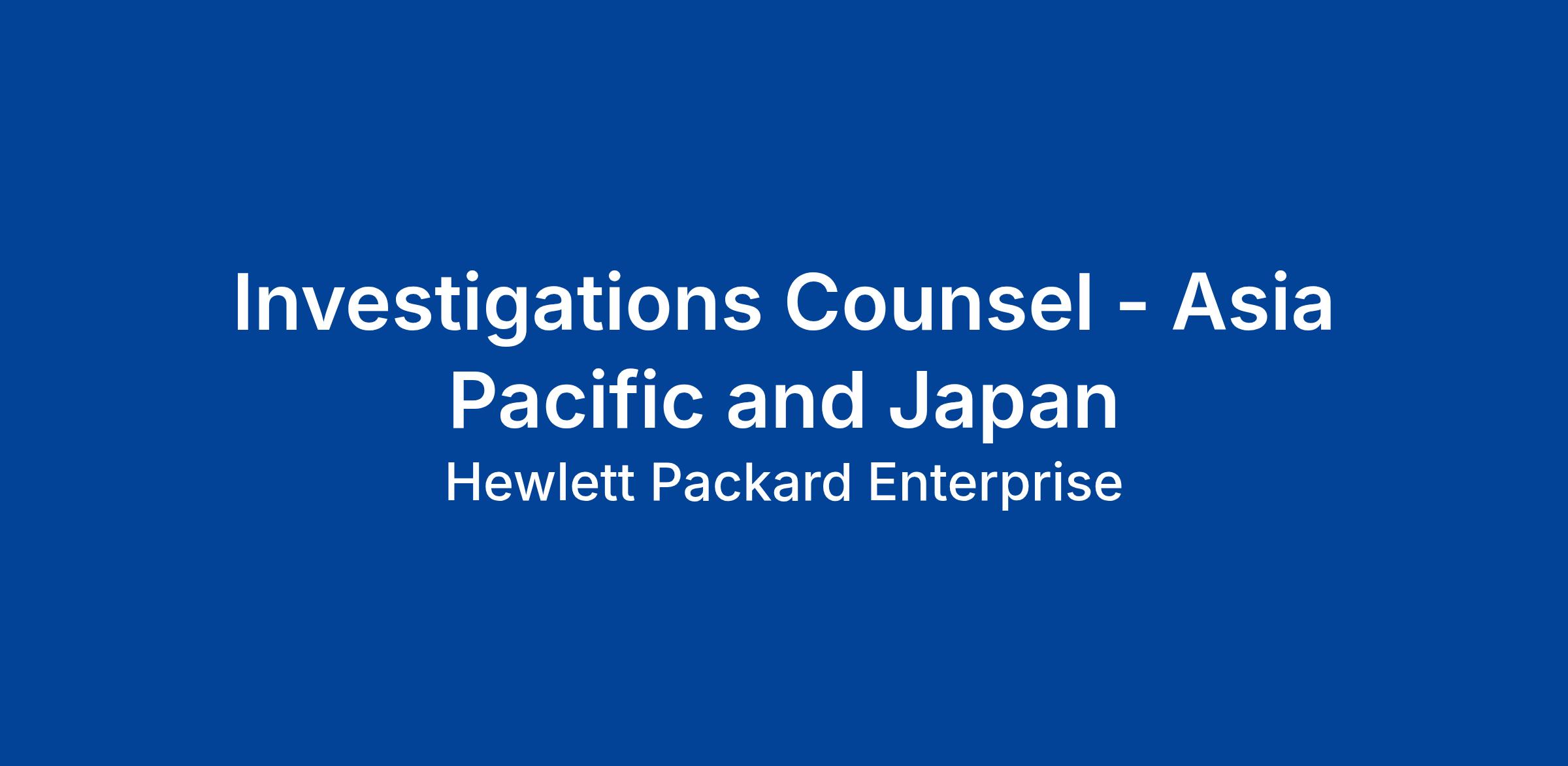 As our in-house Investigations Counsel - Asia Pacific and Japan, you will be responsible for managing, overseeing, conducting, and providing legal guidance on government investigations, as well as investigating allegations of violations of HPE's Standards of Business Conduct ("SBC").