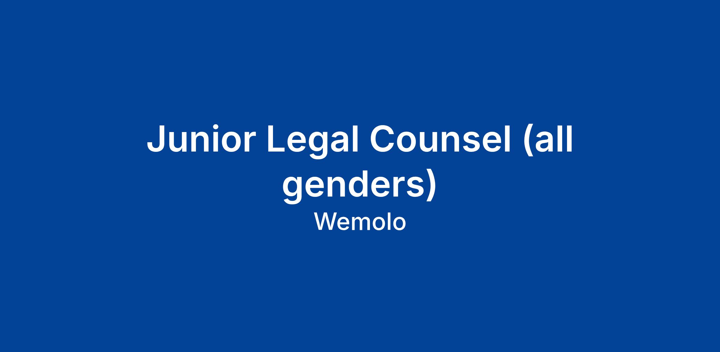 Bei Wemolo bist du als (Junior) Legal Counsel (all genders) Teil unseres Legal Teams und übernimmst Verantwortung für vielfältige rechtliche Fragestellungen. Du begleitest strategische Projekte, berätst interne Stakeholder und trägst maßgeblich dazu bei, dass unser Produkt rechtssicher und erfolgreich auf die Parkflächen kommt.