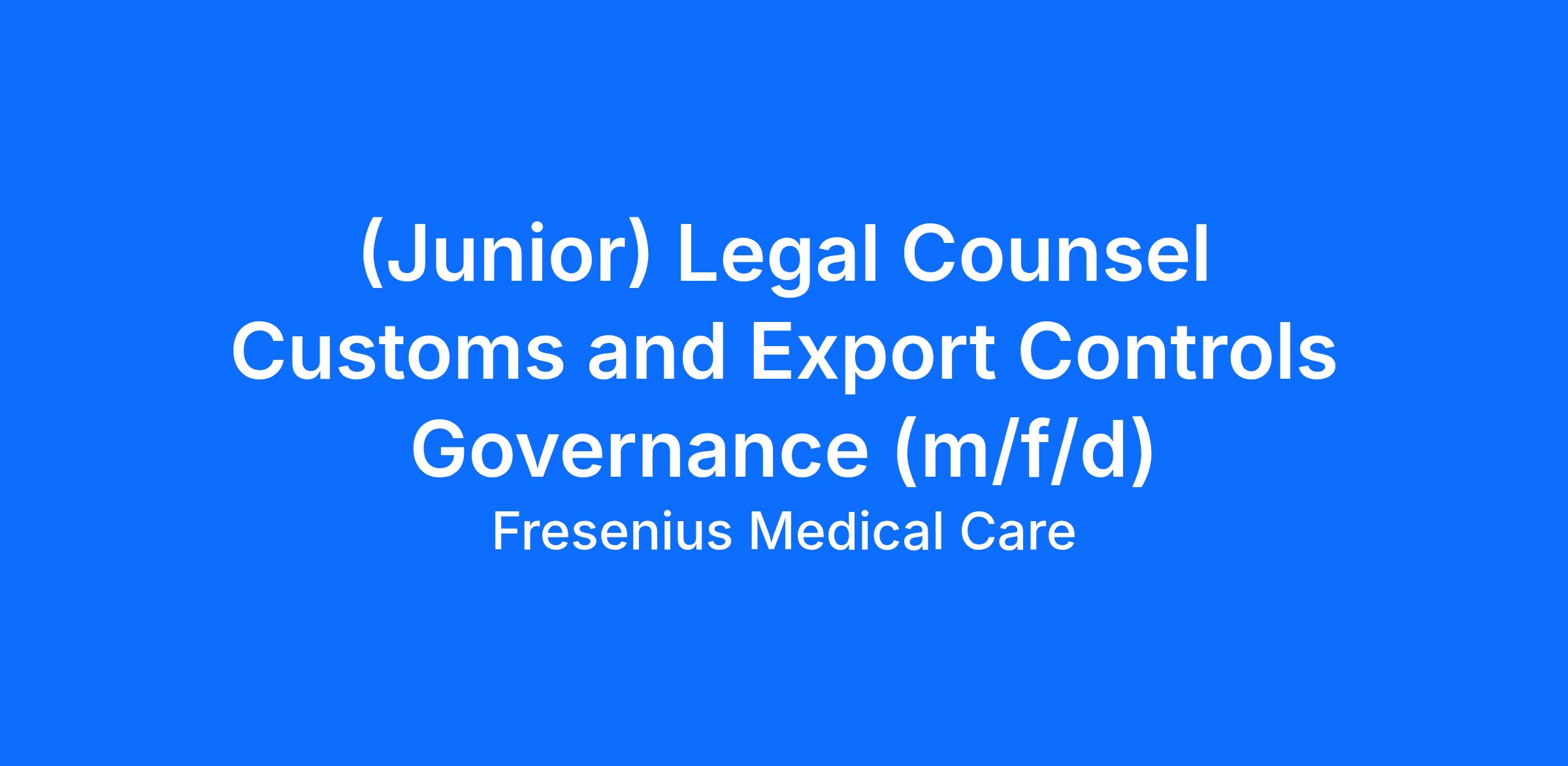 As a (Junior) Legal Counsel Customs and Export Controls Governance (m/f/d), you will contribute to the legal backbone of Fresenius Medical Care’s global trade operations. In this role, you will provide legal guidance on customs and export control matters, support the development of compliant and cost-efficient supply chains, and help integrate trade governance into our global processes. You will collaborate with cross-functional teams to ensure adherence to international trade laws and internal policies, while driving continuous improvement and automation in trade-related legal frameworks. This is an exciting opportunity to grow within a dynamic legal environment and make a meaningful impact on global healthcare logistics.