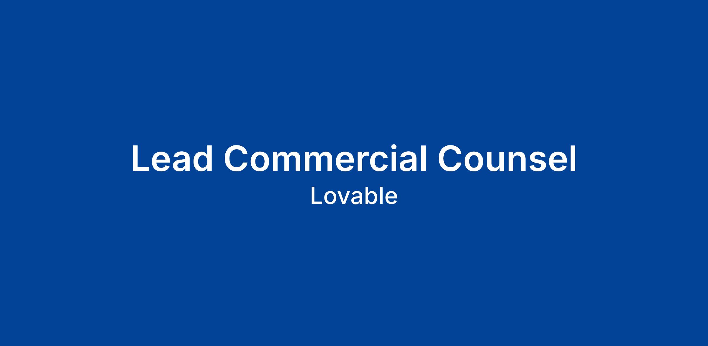 Lovable is growing at terminal velocity. We need a Lead Commercial Counsel who thinks like a Revenue Architect. Your mission is to be the ultimate support system for our Sales and GTM teams - navigating high-stakes enterprise negotiations and building the automated "legal engine" that lets us close deals at 10x the standard speed.