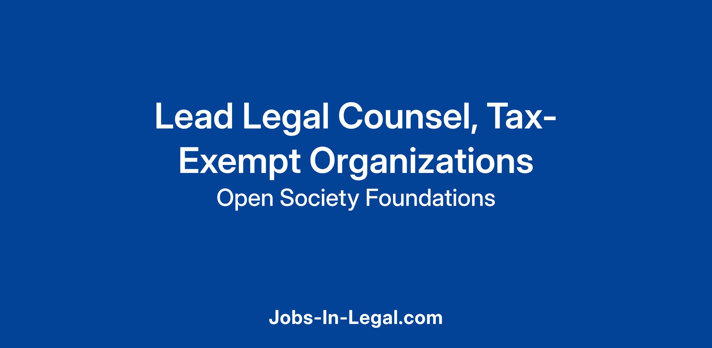 Role Title: Lead Legal Counsel, Tax-Exempt Organizations