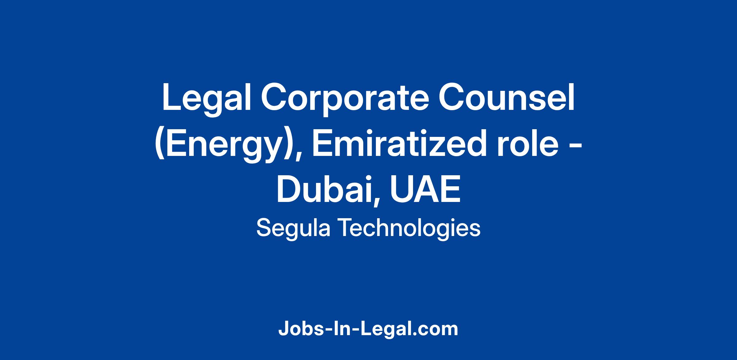 Legal Corporate Counsel (Energy), Emiratized role -Dubai, UAE