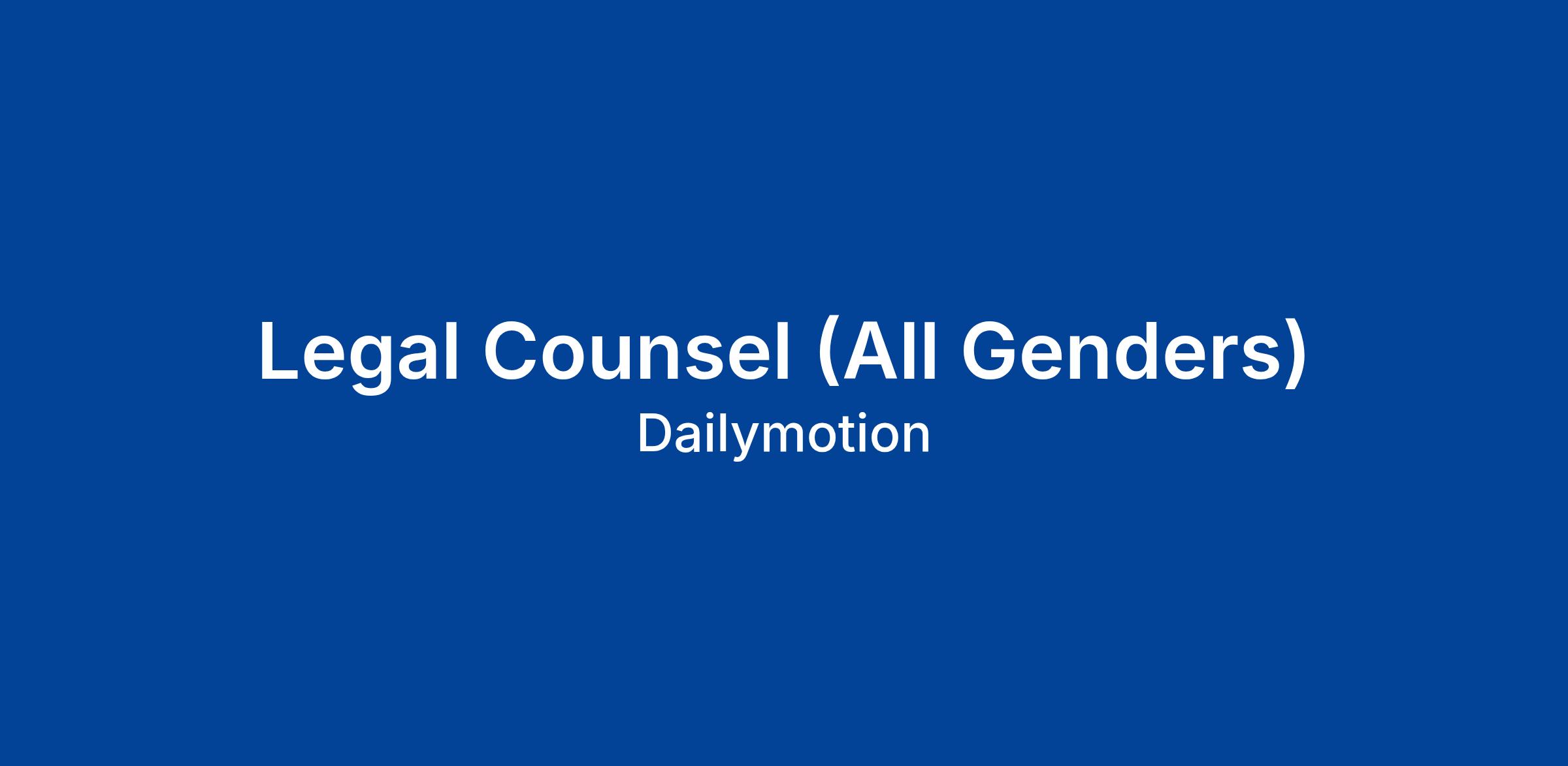 Joining Dailymotion's Legal team means contributing to the growth of a pioneering company that relies on its talents to have a positive impact on society.