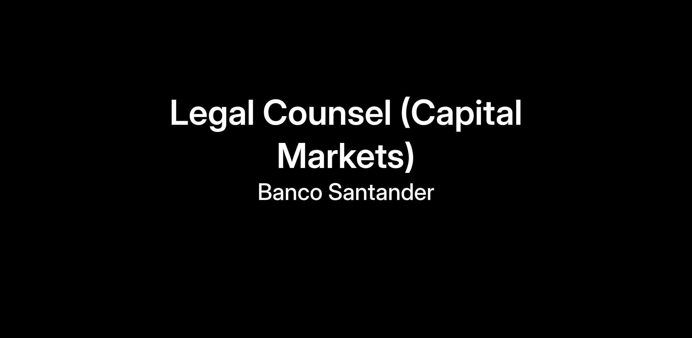 We are looking for a Legal Counsel with capital markets experience that will cover a wide variety of matters in the Santander HQ Legal team, but with likely focus on: