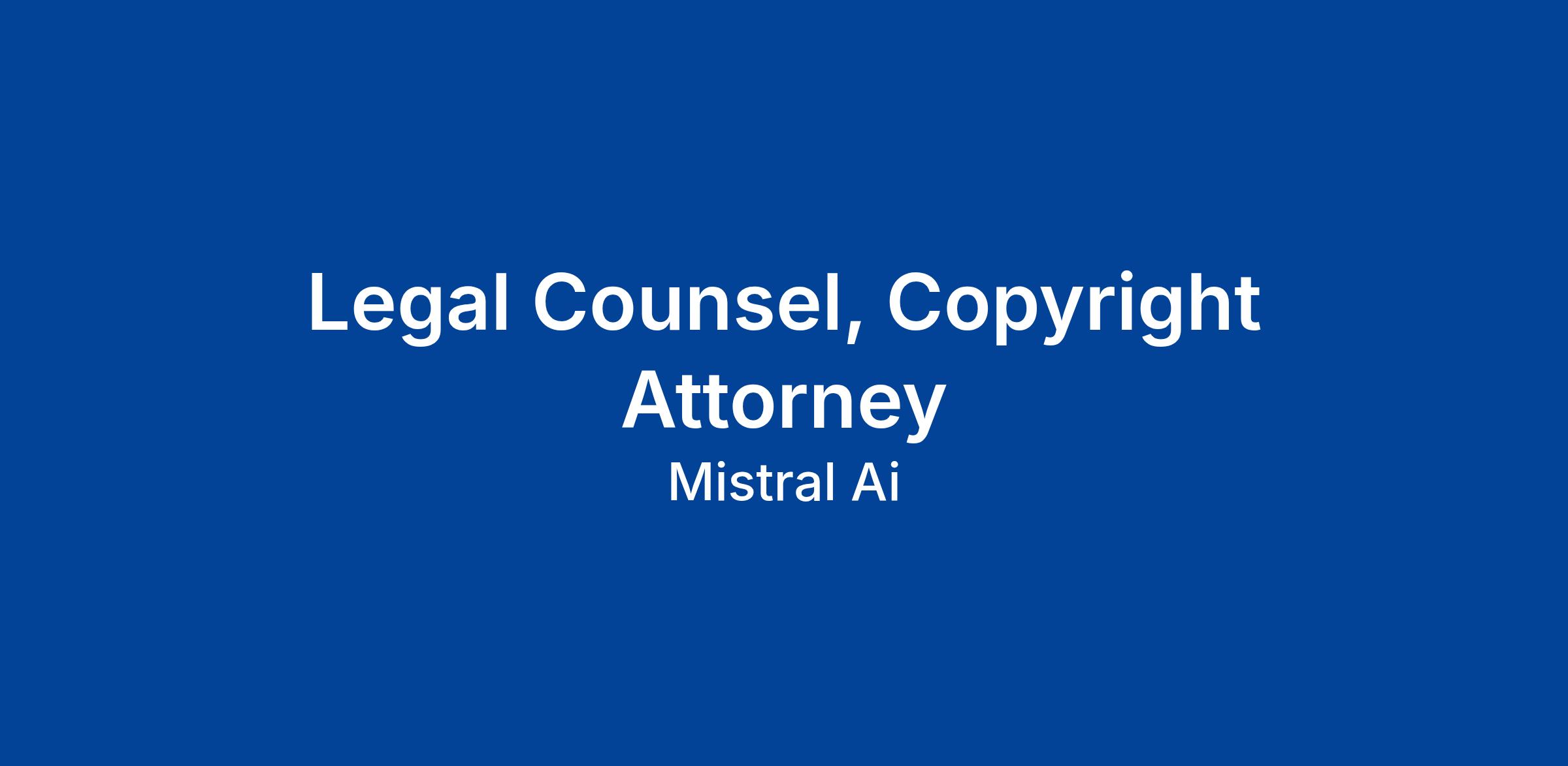 We are seeking a Copyright Attorney to join our Legal team, focusing on data and content acquisitions for pre-training, post-training, RAG, and other AI applications. This is a new role, designed to provide legal support for the increasing number of licensing, data access, and partnership deals that fuel Mistral’s AI models.