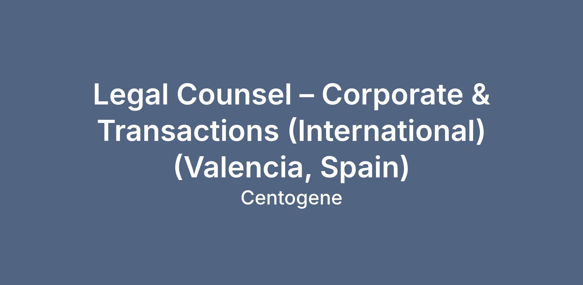 Legal Counsel β Corporate & Transactions (International) (Valencia, Spain)