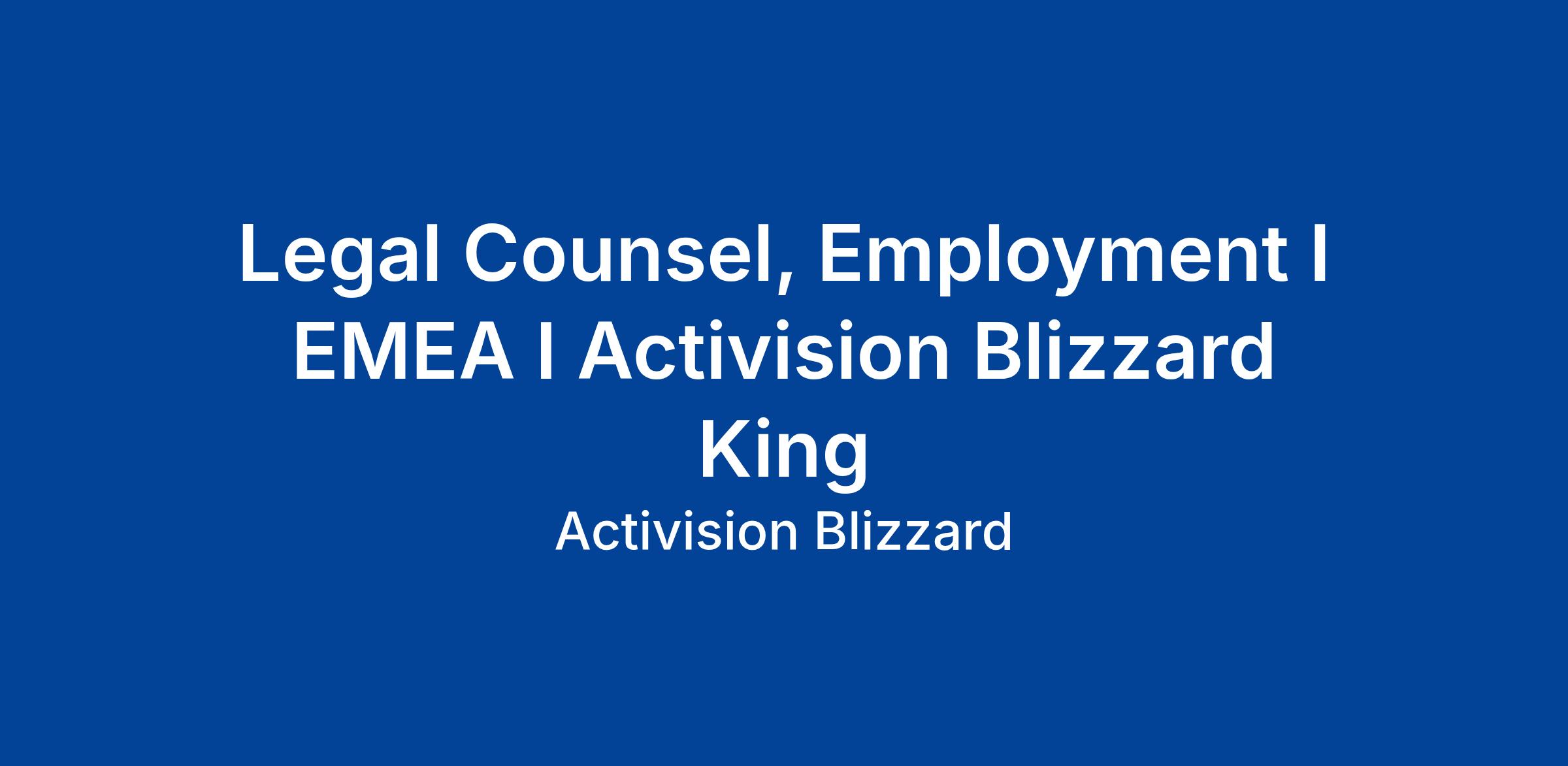 We’re looking for a self-motivated and collaborative employment lawyer to join our EMEA Legal team. This role focuses on employment matters across Activision Blizzard and King’s operations outside of North America, supporting a wide range of international legal work.