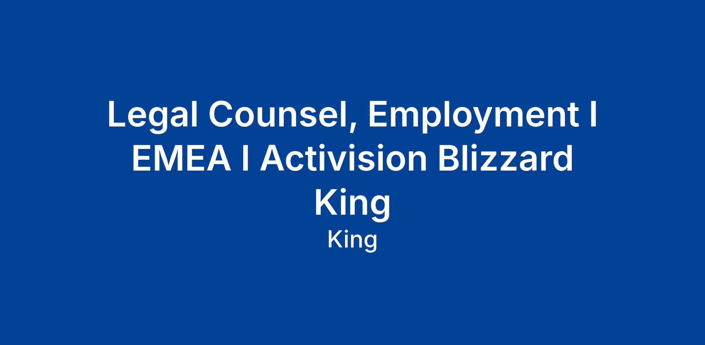 We’re looking for a self-motivated and collaborative employment lawyer to join our EMEA Legal team. This role focuses on employment matters across Activision Blizzard and King’s operations outside of North America, supporting a wide range of international legal work.