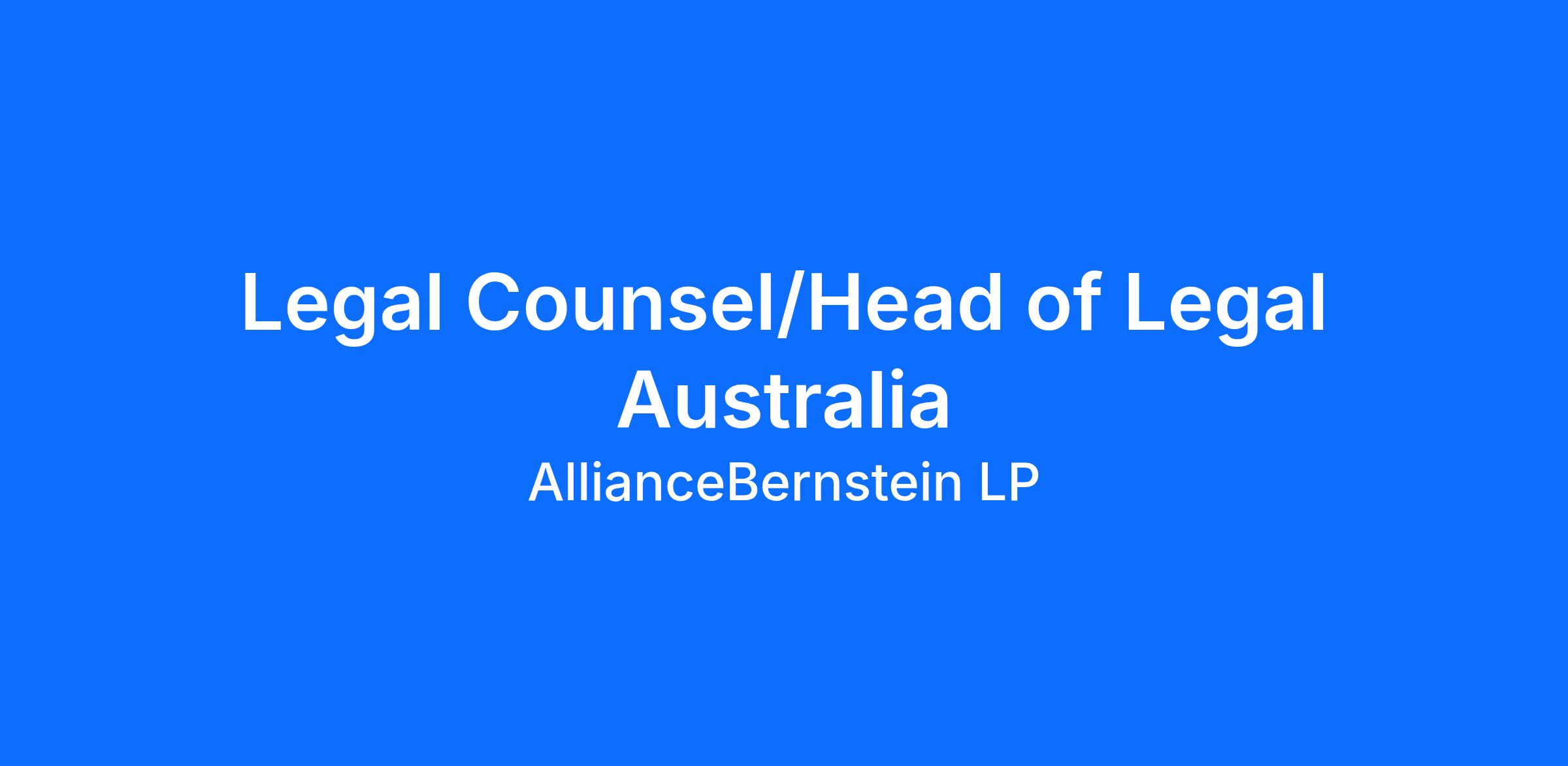 Legal Counsel/Head of Legal Australia