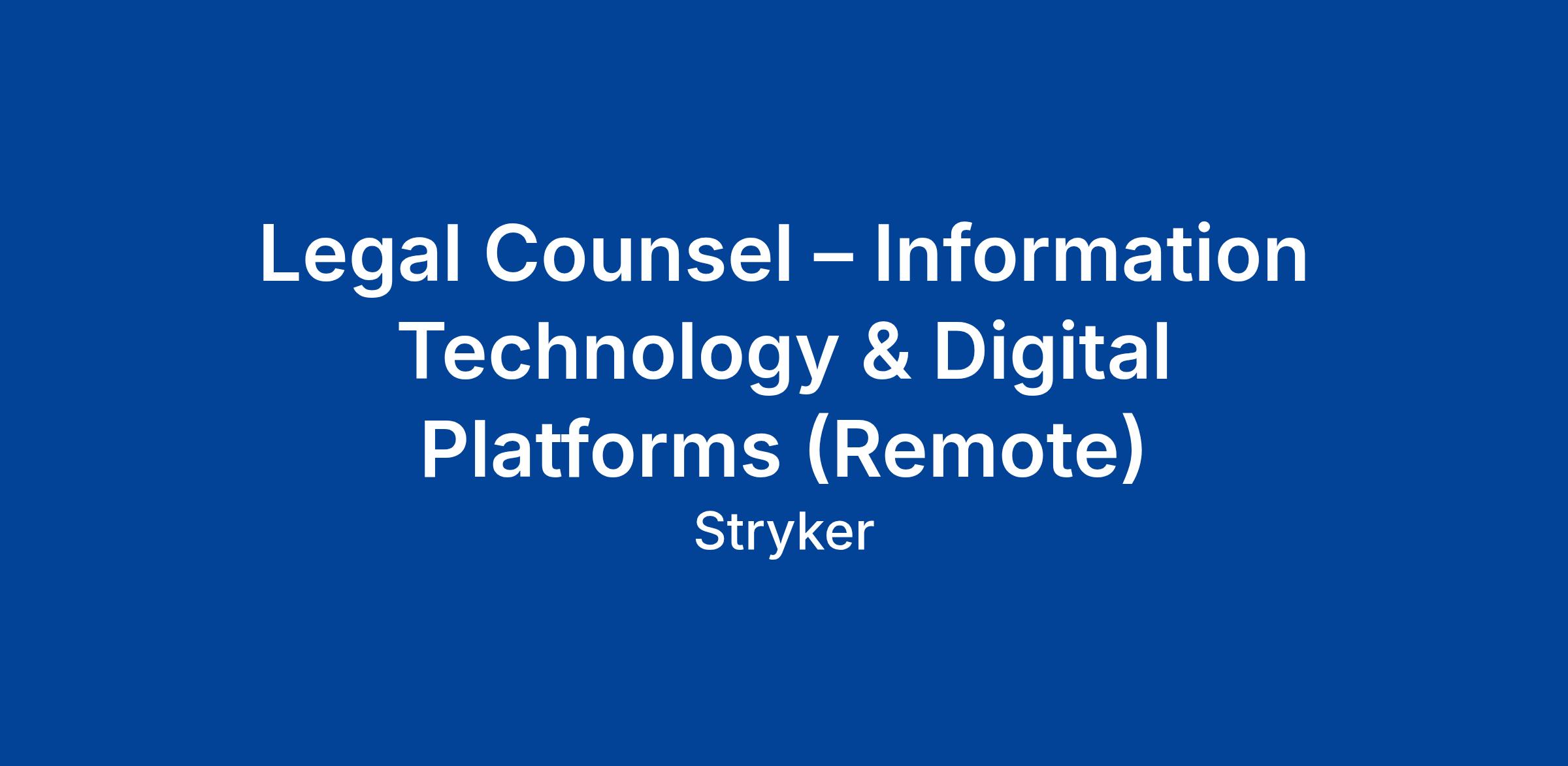 Serve as a member of the Global Privacy & Technology team. The Legal Counsel, Information Technology and Digital Platforms is a pragmatic and business-oriented counsel who supports legal matters related to enterprise IT infrastructure, cloud technologies, digital productivity platforms, and SaaS/PaaS transactions. This role will support digital transformation, licensing, vendor agreements, and IT system governance across Stryker’s enterprise. You will work closely with IT, Information & Data Governance, Privacy, procurement legal, sales contracting legal, and Compliance teams to enable secure and scalable use of technology.