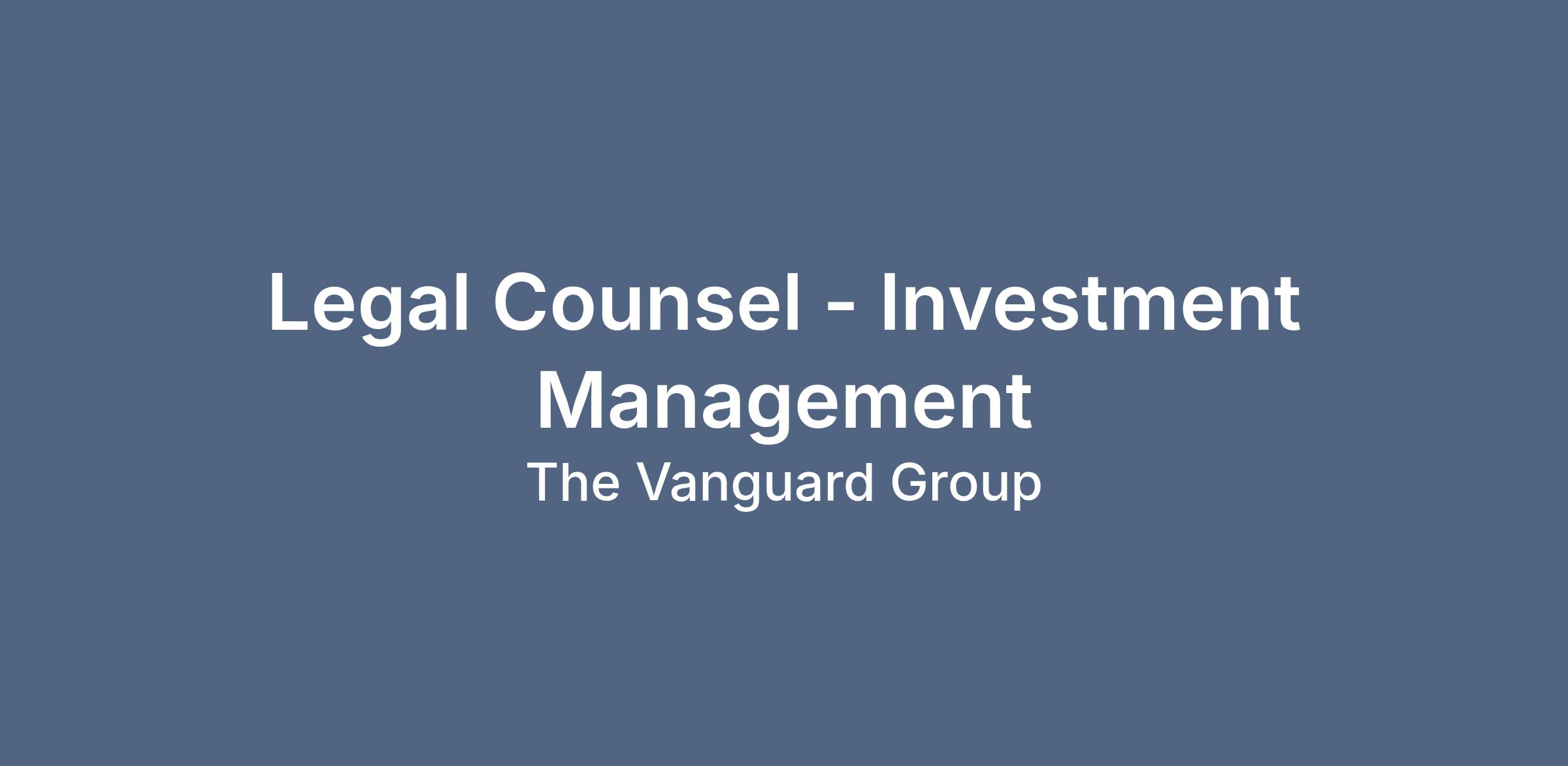 Legal Counsel - Investment Management