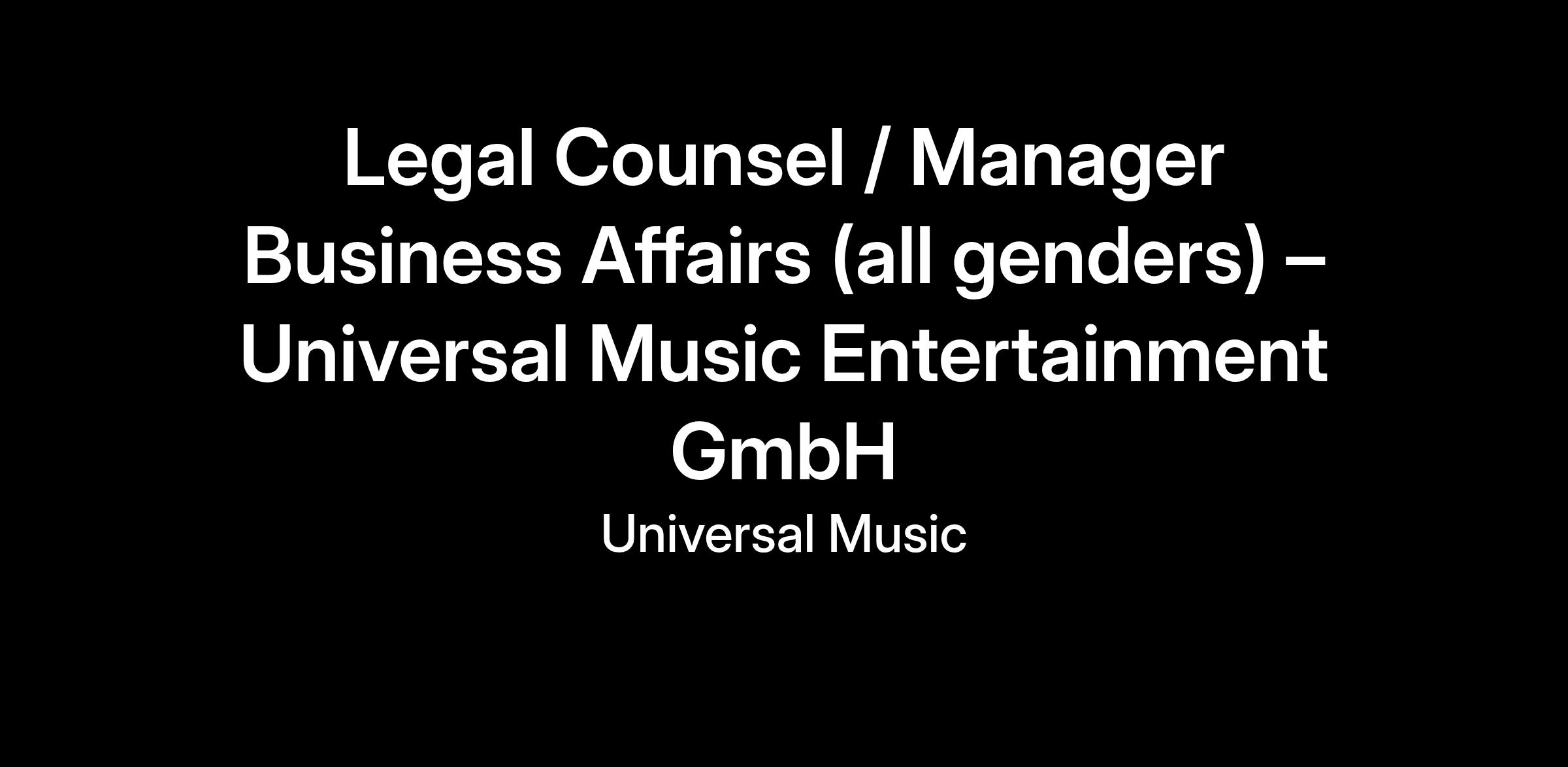 Business & Legal Affairs nimmt als Serviceabteilung sämtliche Vertrags- und Rechtsangelegenheiten der Labels und sonstigen OpCos / Profit Centers wahr. Da der Fokus unternehmerischer Tätigkeit von Universal auf dem Erwerb und dem Handel mit Urheber- und Leistungsschutzrechten gerichtet ist, haben die immateriellen Rechte den größten Anteil an der Wertschöpfungskette des Unternehmens. Demzufolge bilden den Schwerpunkt der juristischen Tätigkeit von Business & Legal Affairs urheberrechtliche Verträge jeder Art.