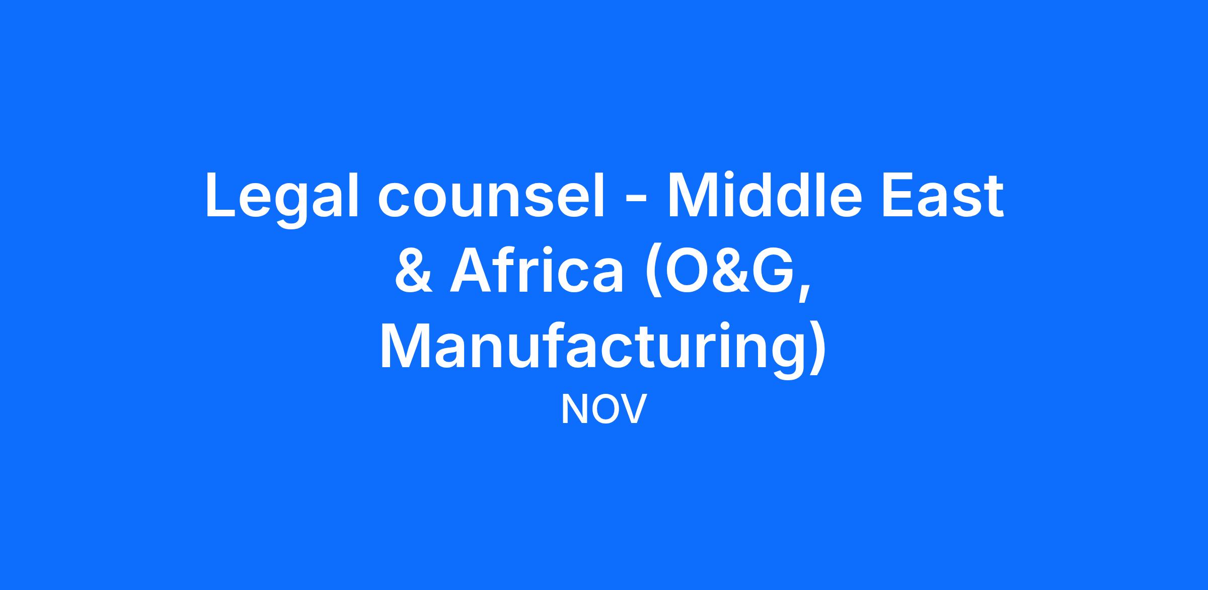 The Legal Counsel – Middle East & Africa will assist the members of NOV’s regional and global legal departments in providing guidance to stakeholders in its corporate teams and businesses primarily in the Middle East and Africa regions.
