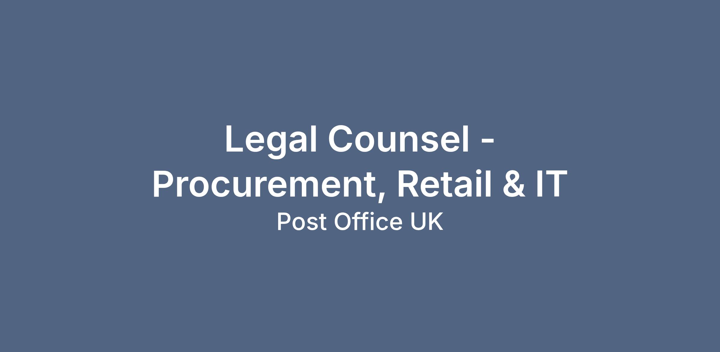 As a Legal Counsel you will join us on our journey and undertake a valuable role supporting the Procurement, Retail and IT business area of Post Office on a broad range of commercial, technology and Procurement law matters.