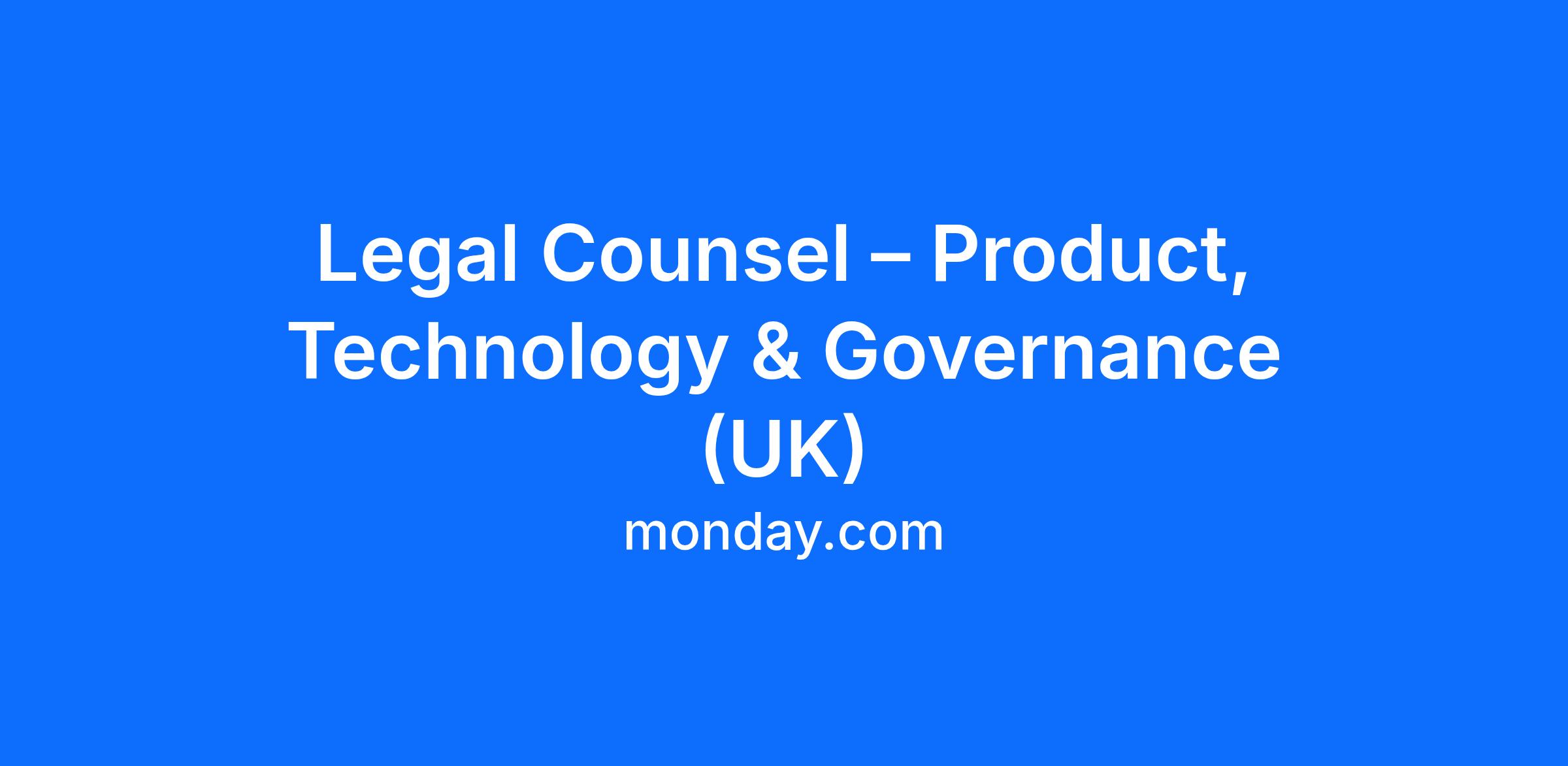 Legal Counsel – Product, Technology & Governance (UK)