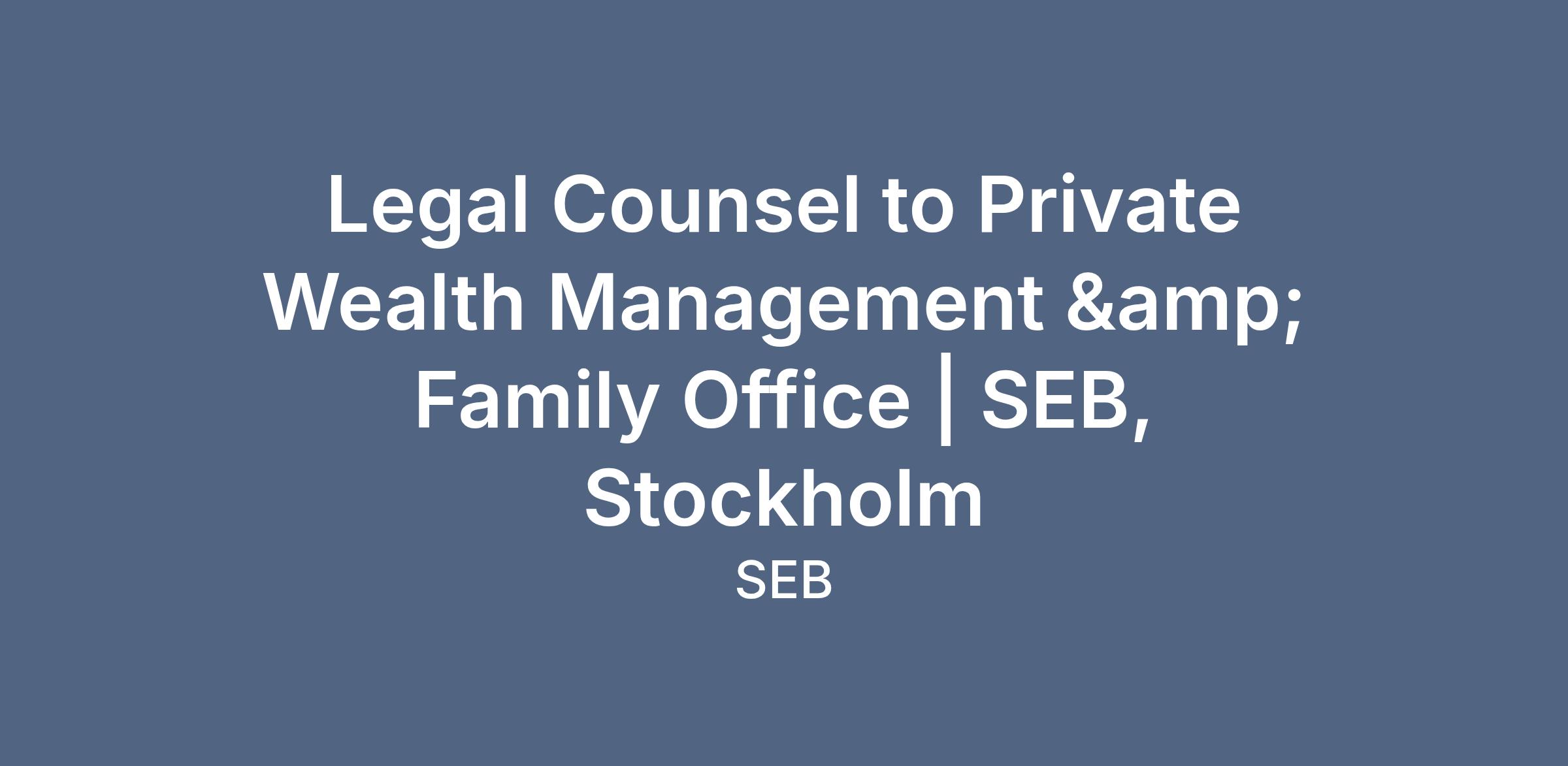 Since we select candidates continuously, feel free to send in your application today via the link in this ad, but no later than April 12th 2026. If you have questions about the position, please contact Helena Ring, Head of PWM&FO Legal, at helena.ring@seb.se, but we will not process applications via email.