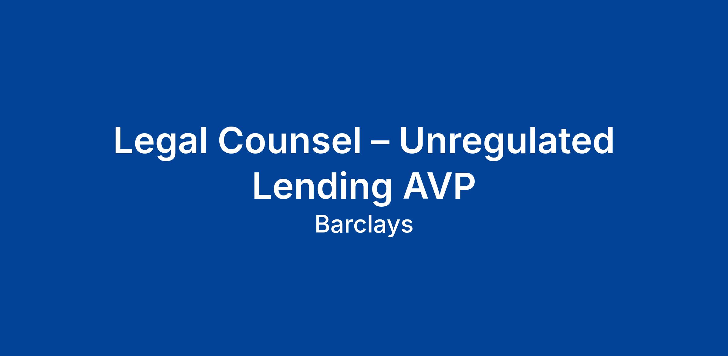 As a member of the Barclays UK (BUK) Legal Unregulated Lending Legal team, you’ll play a central role in shaping the future of BUK’s unregulated lending products and propositions, providing legal advice and support on all aspects of BUK’s current and proposed unregulated lending activity across the different BUK businesses – principally Business Banking, and Education, Social Housing and Local Authorities (ESHLA). The products are either outside the scope of the Consumer Credit Act or subject to an applicable exemption, and may be secured or unsecured, and the BUK Legal Unregulated Lending team provide end to end product advice. You’ll advise on product innovation, simplification, product launch / change / withdrawal and customer journeys, ensuring regulatory compliance and robust legal risk rationale. You’ll collaborate and influence in contract drafting and negotiation, and you’ll partner with other brilliant legal colleagues across the function on cross-bank legal challenges. You’ll work independently and flexibly in a busy and commercial environment, across a range of products and services in order to identify and manage risk, and to plan for change resulting from any developing regulation.