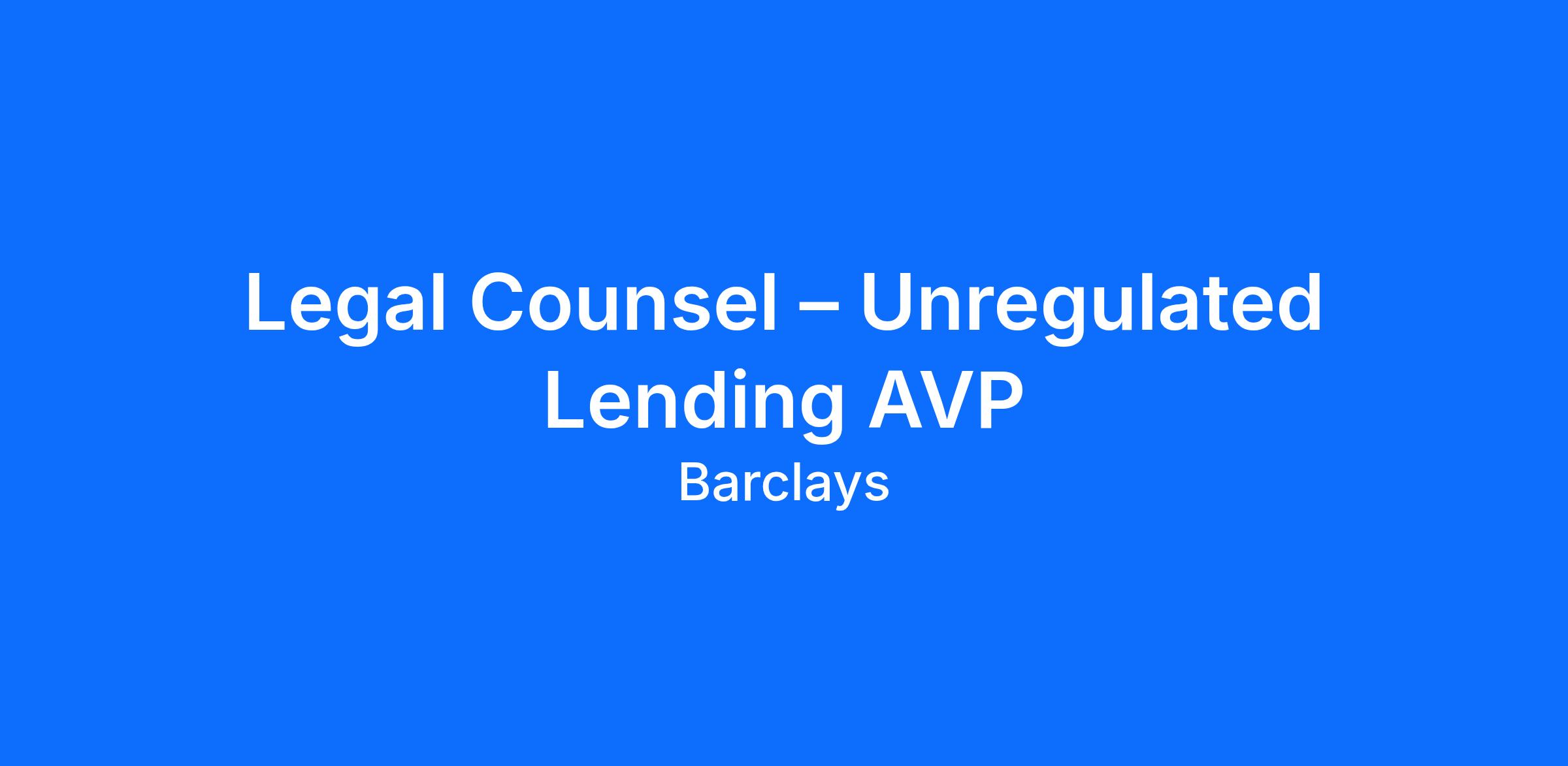 As a member of the Barclays UK (BUK) Legal Unregulated Lending Legal team, you’ll play a central role in shaping the future of BUK’s unregulated lending products and propositions, providing legal advice and support on all aspects of BUK’s current and proposed unregulated lending activity across the different BUK businesses – principally Business Banking, and Education, Social Housing and Local Authorities (ESHLA). The products are either outside the scope of the Consumer Credit Act or subject to an applicable exemption, and may be secured or unsecured, and the BUK Legal Unregulated Lending team provide end to end product advice. You’ll advise on product innovation, simplification, product launch / change / withdrawal and customer journeys, ensuring regulatory compliance and robust legal risk rationale. You’ll collaborate and influence in contract drafting and negotiation, and you’ll partner with other brilliant legal colleagues across the function on cross-bank legal challenges. You’ll work independently and flexibly in a busy and commercial environment, across a range of products and services in order to identify and manage risk, and to plan for change resulting from any developing regulation.