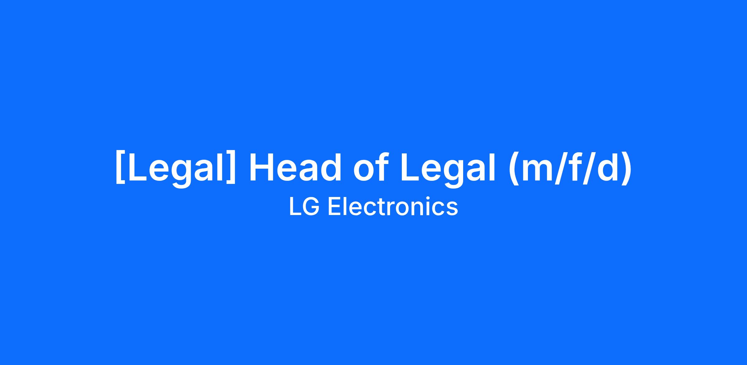 Head of Legal and Compliance department at LG Electronics Deutschland GmbH, responsible for Germany, Austria, Switzerland, as well as the European B2B division, and the European Headquarter consisting of totally nearly 500 employees. Supervision of the members of the legal department in Germany.