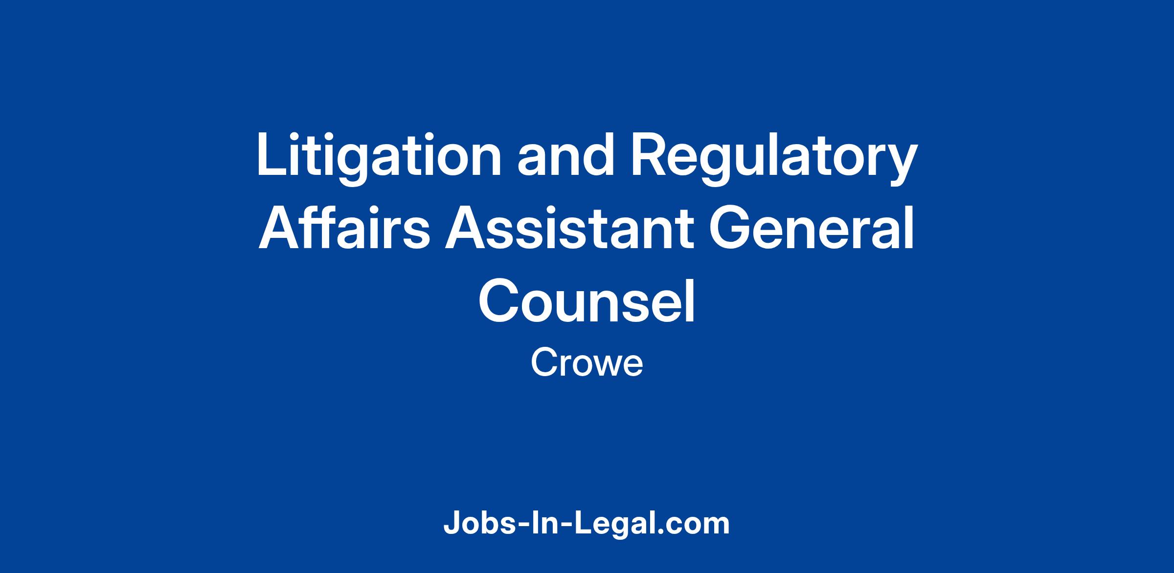 Crowe LLP is seeking an Assistant General Counsel for Litigation and Regulatory Affairs. This Assistant General Counsel will manage the firm’s responses to all litigation, regulatory investigations, and subpoenas, as well as advise our professionals on risk items. The Assistant General Counsel will report to the General Counsel within Crowe’s Firm Risk Management business unit and will have significant exposure to the company’s partners, management, and all functional areas. Crowe’s Firm Risk Management business unit and its Legal Department are critical components of the firm's organizational structure. The Assistant General Counsel for Litigation and Regulatory Affairs will support the General Counsel and other Crowe personnel in the development of overall risk management and legal strategy and assist with its implementation. To perform this function, the Assistant General Counsel must learn general firm practice in a wide variety of areas, proactively identify issues presenting risk to the firm, and act as a driver of good business process. A successful candidate will commit to learning Crowe’s multiple business lines at a detailed level and be a leader capable of developing and maintaining close working relationships with the firm’s other business leaders. Members of the Legal Department must lead, educate, and collaboratively assist our business leaders, seeking practical and creative solutions to the issues confronted. Our attorneys are expected to work on a broad variety of legal matters outside of their central role. In addition to the below Role and Responsibilities, the Assistant General Counsel will review, revise, and negotiate professional services and technology agreements; utilize our contract management software for such agreements; and assist with merger and acquisition activities.