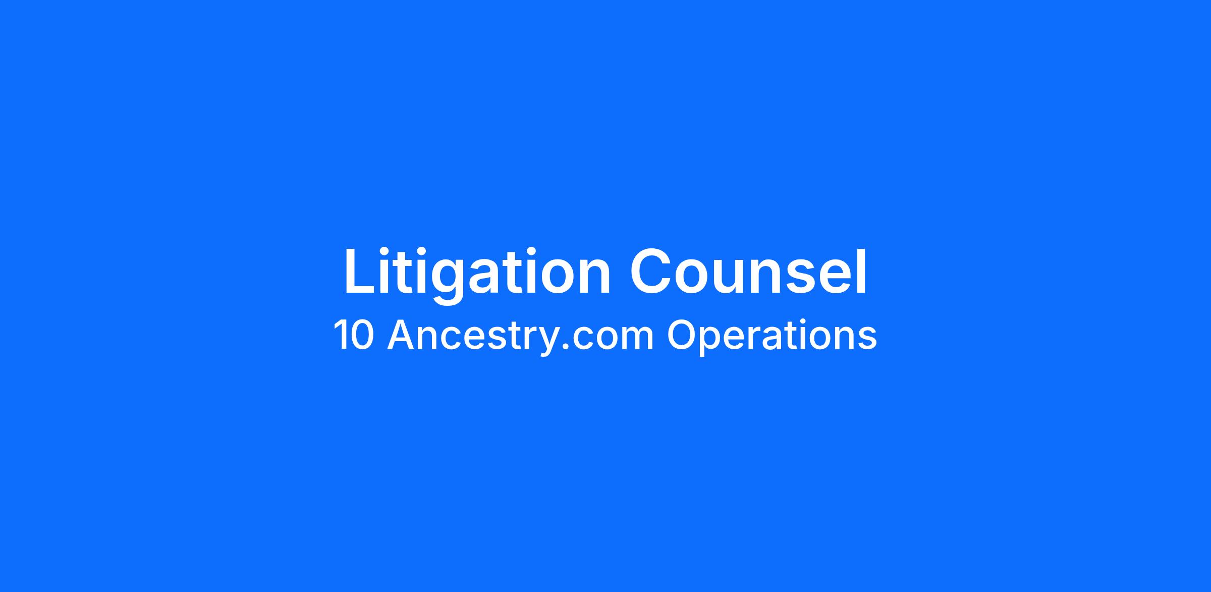Ancestry is seeking a litigation counsel to manage litigation and pre-litigation matters across our global operations. The role will be a remote position. Reporting to the Associate General Counsel for Litigation and Employment, this individual will oversee all stages of litigation, advise the business on litigation risks, and actively manage outside counsel. A litigator with experience in IP litigation or privacy litigation would be preferred, but not required.