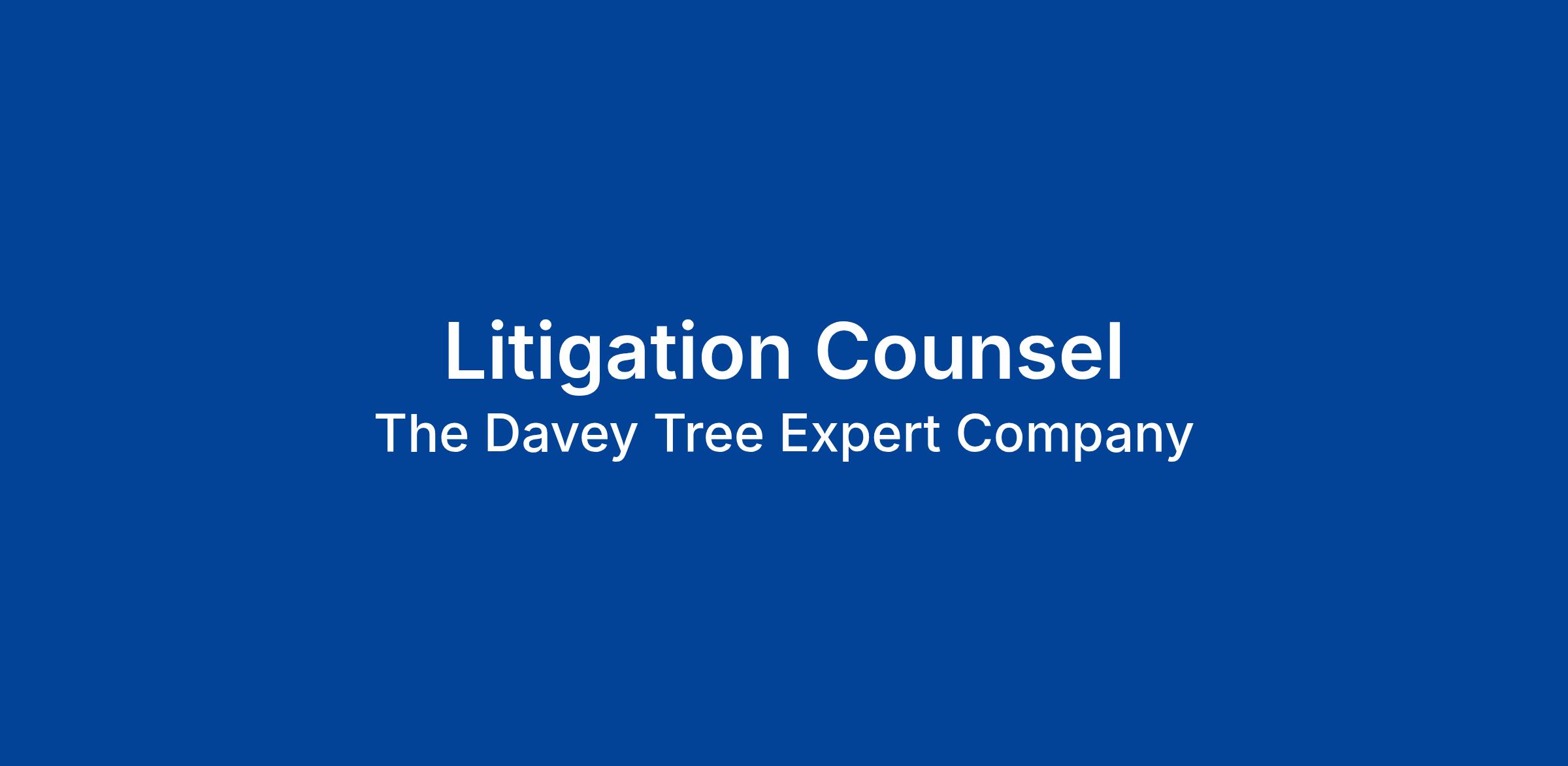 Davey Tree has an exciting opportunity for a Litigation Counsel (“Counsel”) position in a dynamic, growing legal team. Davey Tree is looking for someone who is highly collaborative, focused on legal and business solutions, and has demonstrated leadership capabilities. This unique opportunity offers an attorney the chance to earn a competitive, market-based salary, receive a generous annual bonus, and progressively expand their role and responsibilities within the legal department.