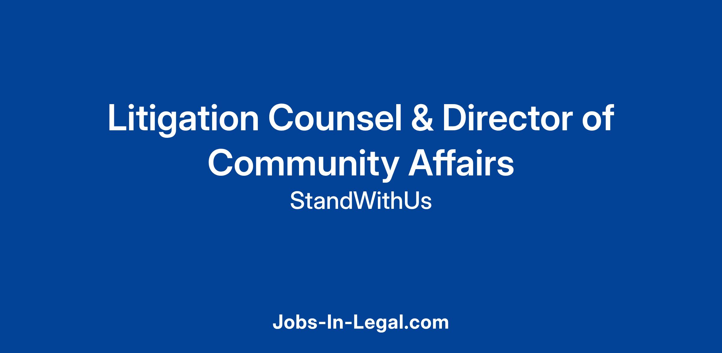 The new role of Litigation Counsel and Director of Community Affairs will focus on our growing practice of strategic impact litigation and community intake, our fastest growing area. This position will report directly to the StandWithUs Saidoff Law Director and the StandWithUs Director of Legal Policy and Litigation.