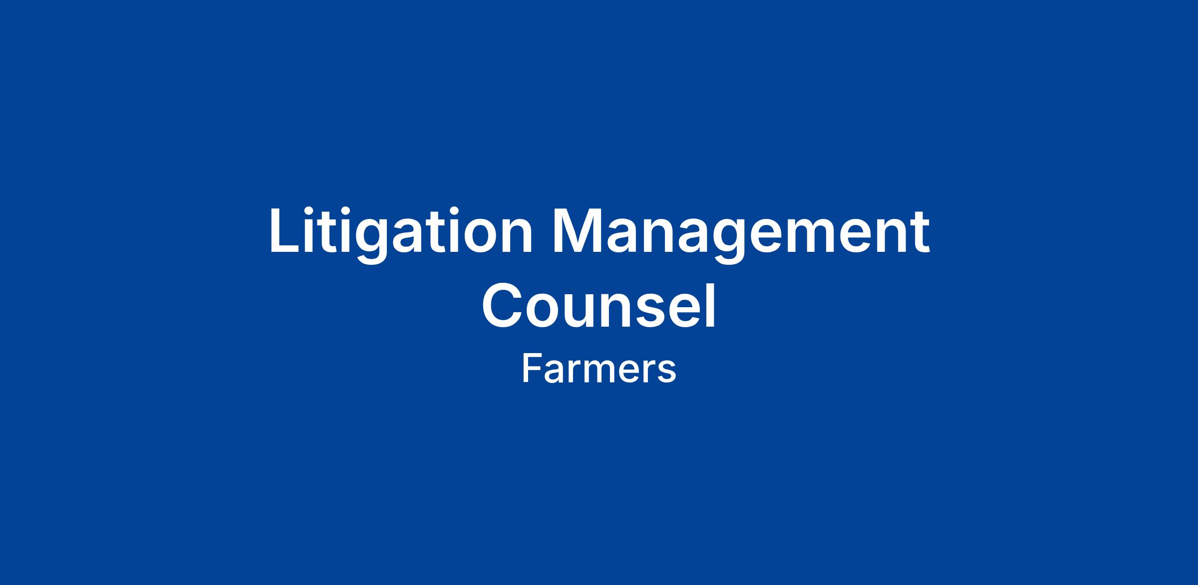 The Litigation Management Counsel is responsible for direct communications with the Company regarding evaluations and recommendations relating to complex and high exposure litigation against the Company. Litigation Management Counsel also coordinates and oversees outside counsel in trial and appellate work and is accountable for evaluating, assessing, designing and implementing litigation strategy in collaboration with defense counsel as well as assuring the litigation against the Company is handled in a consistent, efficient and effective manner. The Litigation Management Counsel assists handling attorneys on matters of procedure and substantive law including, pleadings, discovery matters, and policy coverage questions.