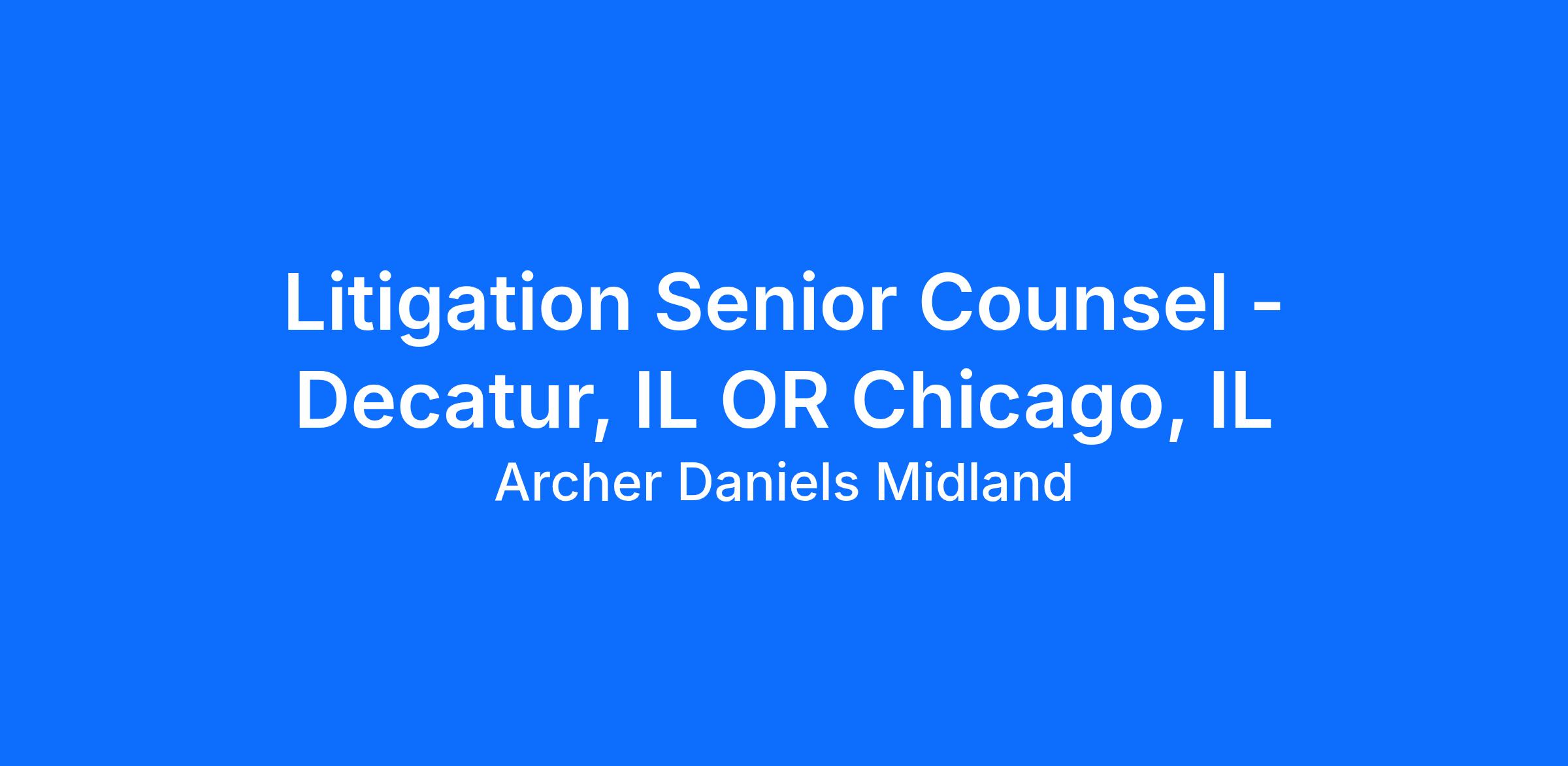 Litigation Senior Counsel - Decatur, IL OR Chicago, ILThis is an exempt level position.
