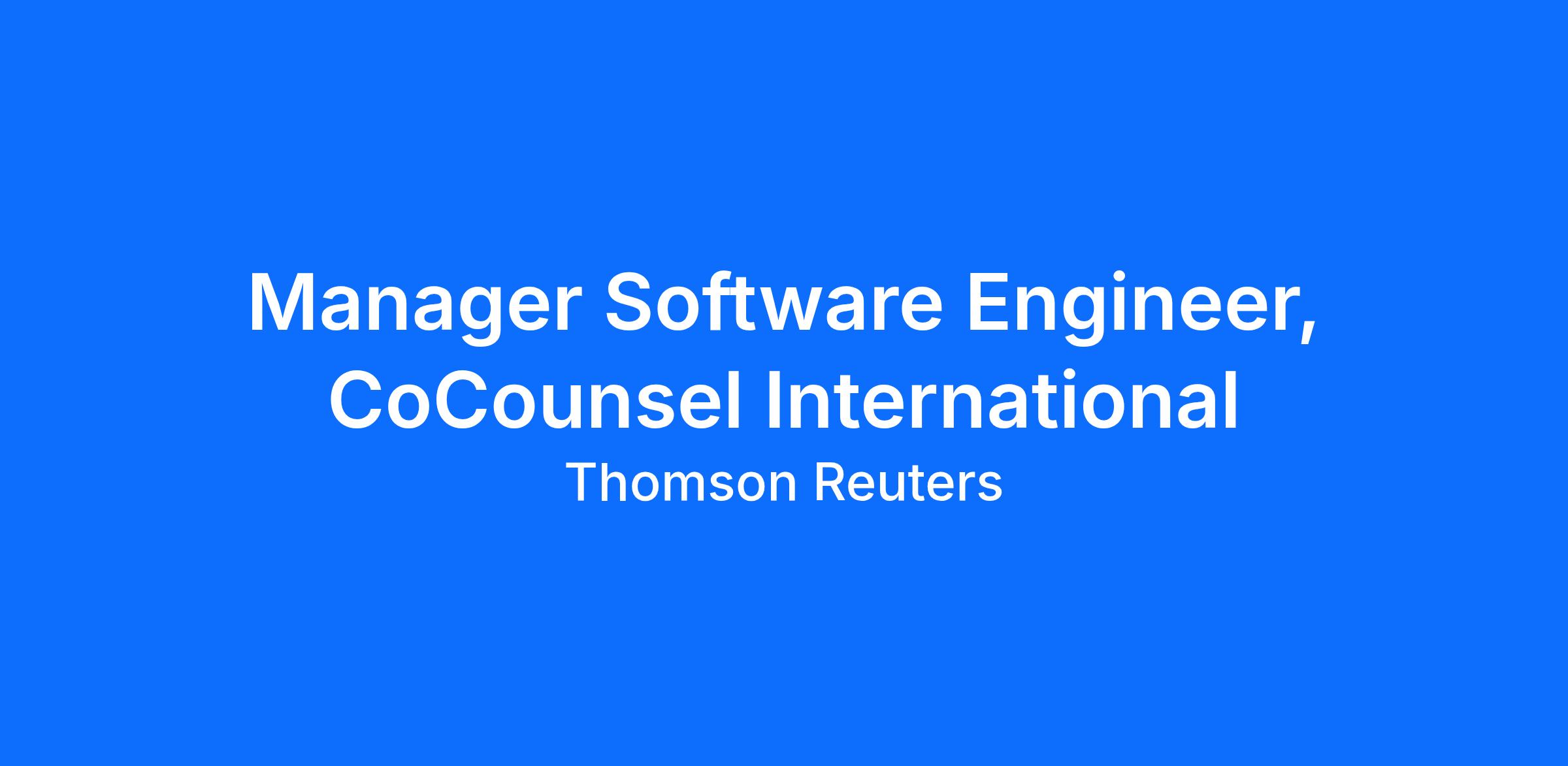 Are you ready to lead an engineering team pushing the boundaries of innovation and impact? We’re looking for an experienced Manager Software Engineer to guide the development of our next-generation CoCounsel product and lead a team of multi-lingual technical experts in successfully executing technology projects and solutions that align with the strategy and have broad business impact across the globe. The Manager will work closely with the international CoCounsel development teams to identify and understand key features and their underlying functionality while also partnering closely with Product Management and UX Design. They may exercise influence and govern overall end-to-end software development life cycle related activities including management of support and maintenance releases, minor functional releases, and major projects. The Manager will lead & provide technical and professional guidance for process improvement programs while leveraging engineering best practices. In this people leadership role, Managers will recruit, train, motivate, coach, grow and develop team members at a variety of levels through their technical expertise and providing continuous feedback to ensure employee expectations, customer needs and product demands are met.