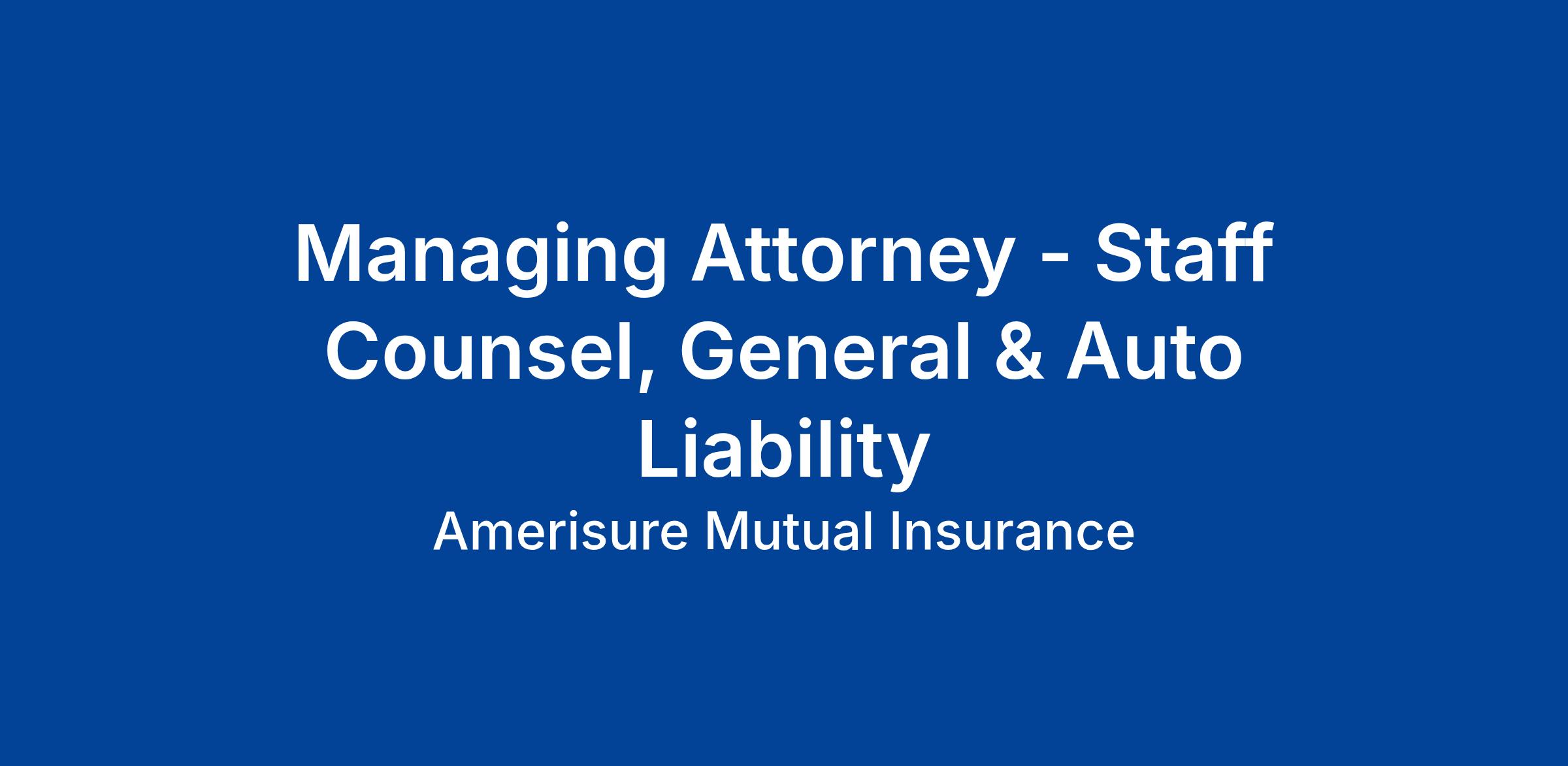 Amerisure is currently recruiting for a Managing Attorney – Staff Counsel, General & Auto Liability. This role has flexibility to sit remotely for the right candidate. Looking for someone with a strong civil litigation background handling complex claims. The ideal candidate will also possess the following skill set.