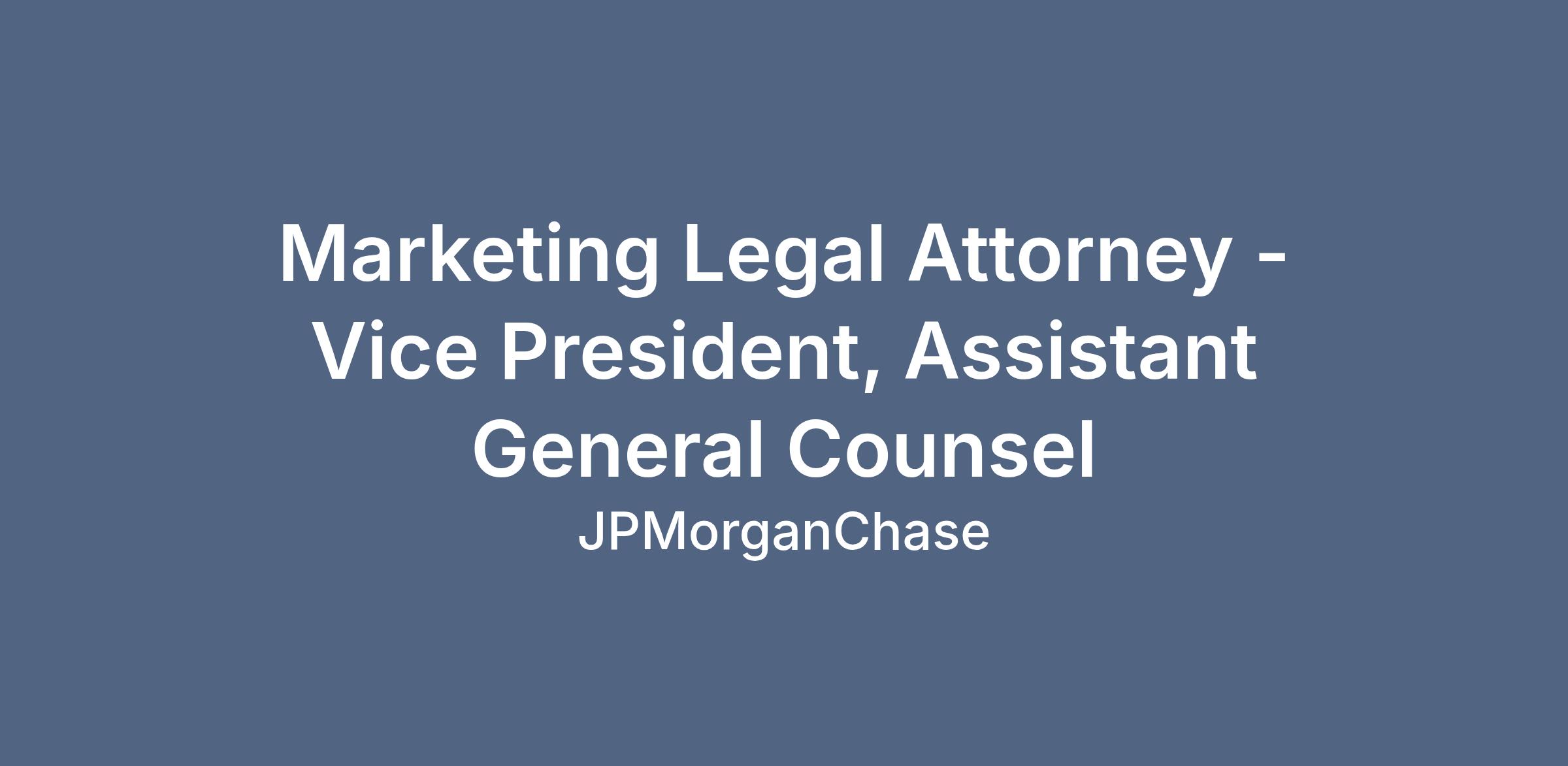 DescriptionBring your expertise to JPMorganChase, a leading global financial services firm, as a trusted legal advisor. Be part of a dynamic team that manages legal risks in marketing and advertising, providing innovative solutions to advance business objectives.