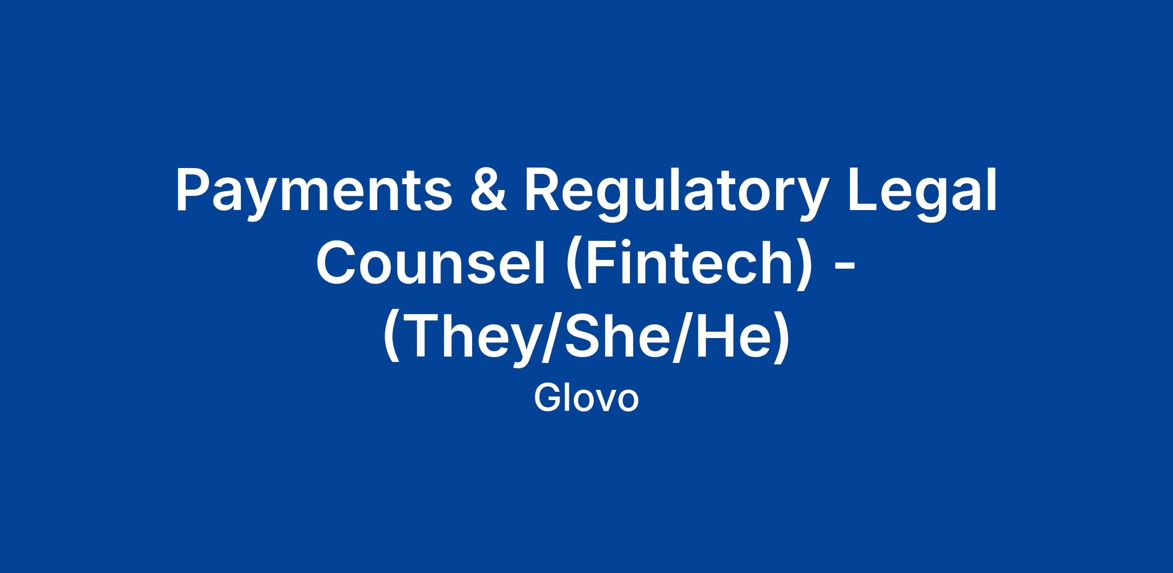 The FinTech Legal counsel is responsible for providing legal guidance on the development and implementation of a broad variety of financial products, ensuring compliance with applicable laws and regulations across multiple markets and regions Glovo's operates in. The responsibilities of this team also include assessing legal risks associated with commercial transactions and partnerships, as well as working closely with cross-functional teams to navigate regulatory frameworks and support strategic initiatives in the fintech space.