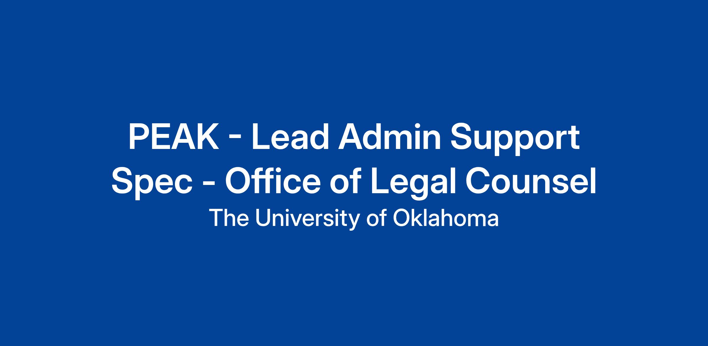 The Office of Legal Council is hiring a Lead Administrative Support Specialist. The position is estimated to last three to six months, but may turn into long term.