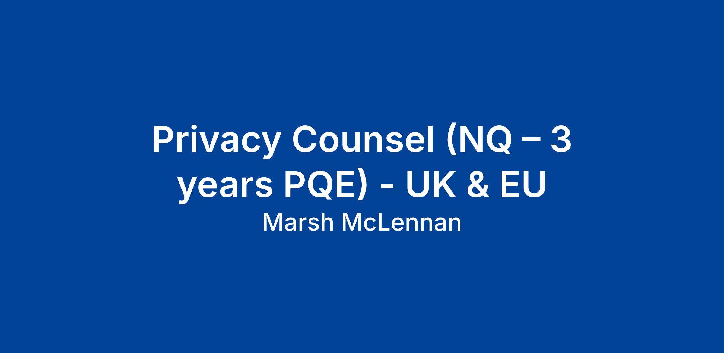 We have an exciting career opportunity for a privacy lawyer to join the Privacy Centre of Excellence (COE) in a UK & EU role. This position provides great flexibility and visibility across the business for a driven candidate. Data is fundamental to our client services at Marsh, and we pride ourselves on being responsible stewards of the large volumes of global data we are entrusted with, and in our thoughtful design of innovative offerings to help clients manage risks. We are looking for a forward-thinking and collaborative lawyer to join our team. As Privacy Counsel, you’ll report to our Chief Privacy Officer and DPO, UK & EU.