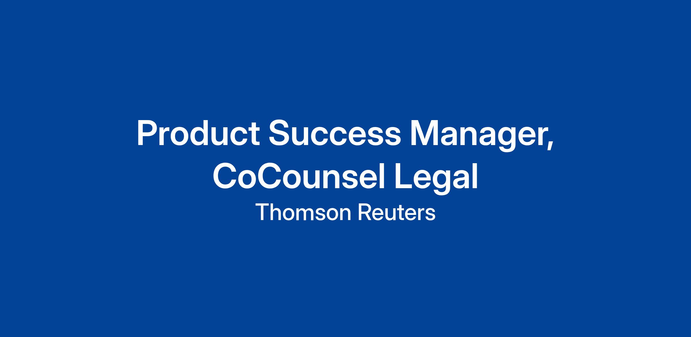 · Deliver all aspects of the customer success motion to assigned customers; in combination with deep CoCounsel Legal product expertise. Including, but not limited to: co-creating customer success plans, delivering executive business reviews, demonstrating value, identifying and mitigating risk while retaining and growing the customers' relationship with Thomson Reuters.