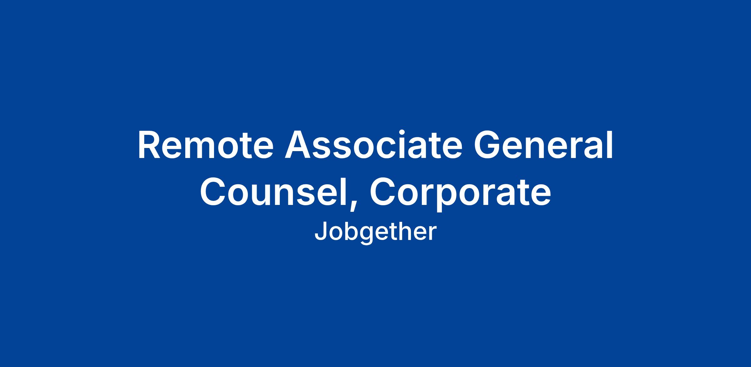 Remote Associate General Counsel, Corporate