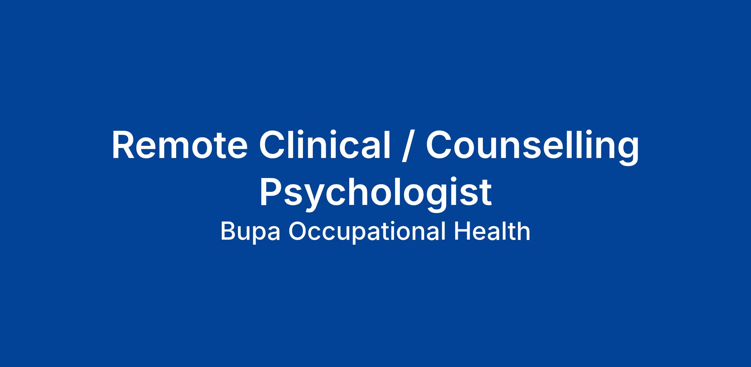 Remote Clinical / Counselling Psychologist