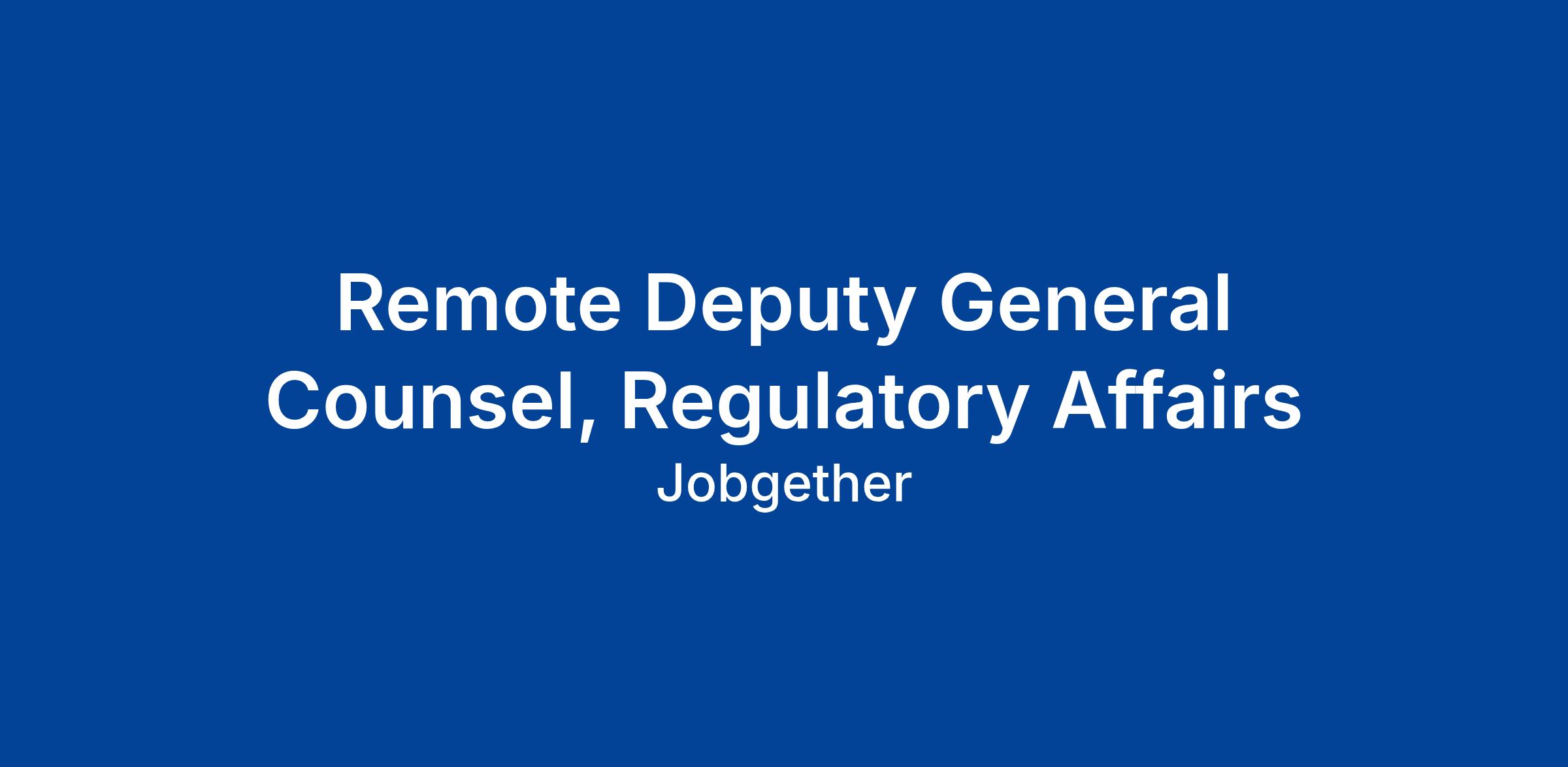 Remote Deputy General Counsel, Regulatory Affairs