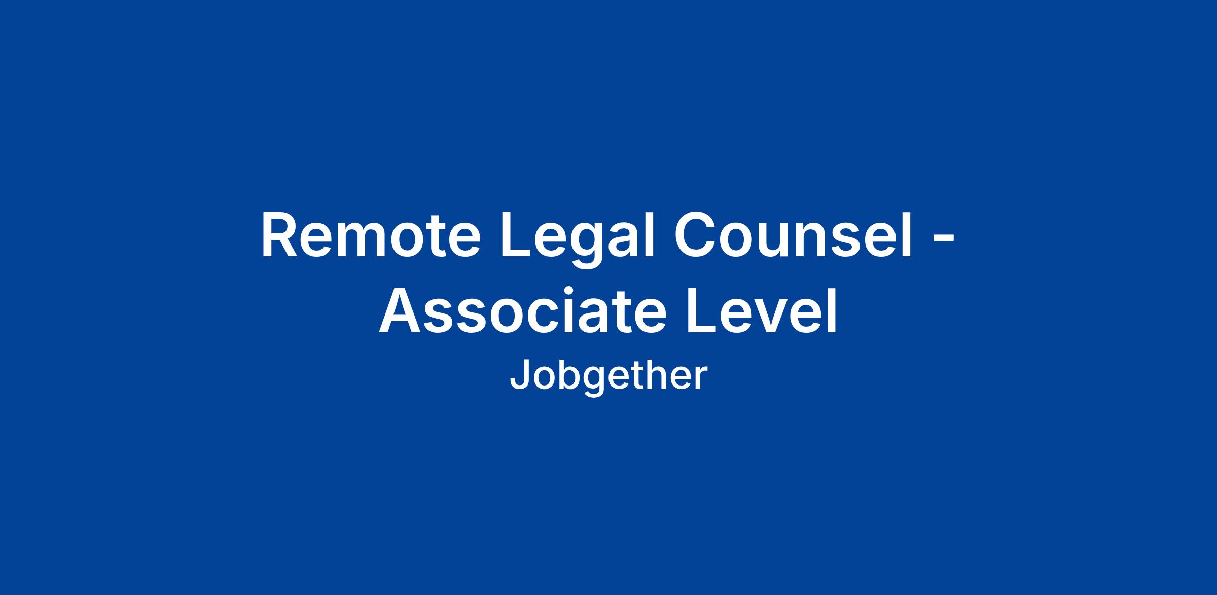 Remote Legal Counsel - Associate Level