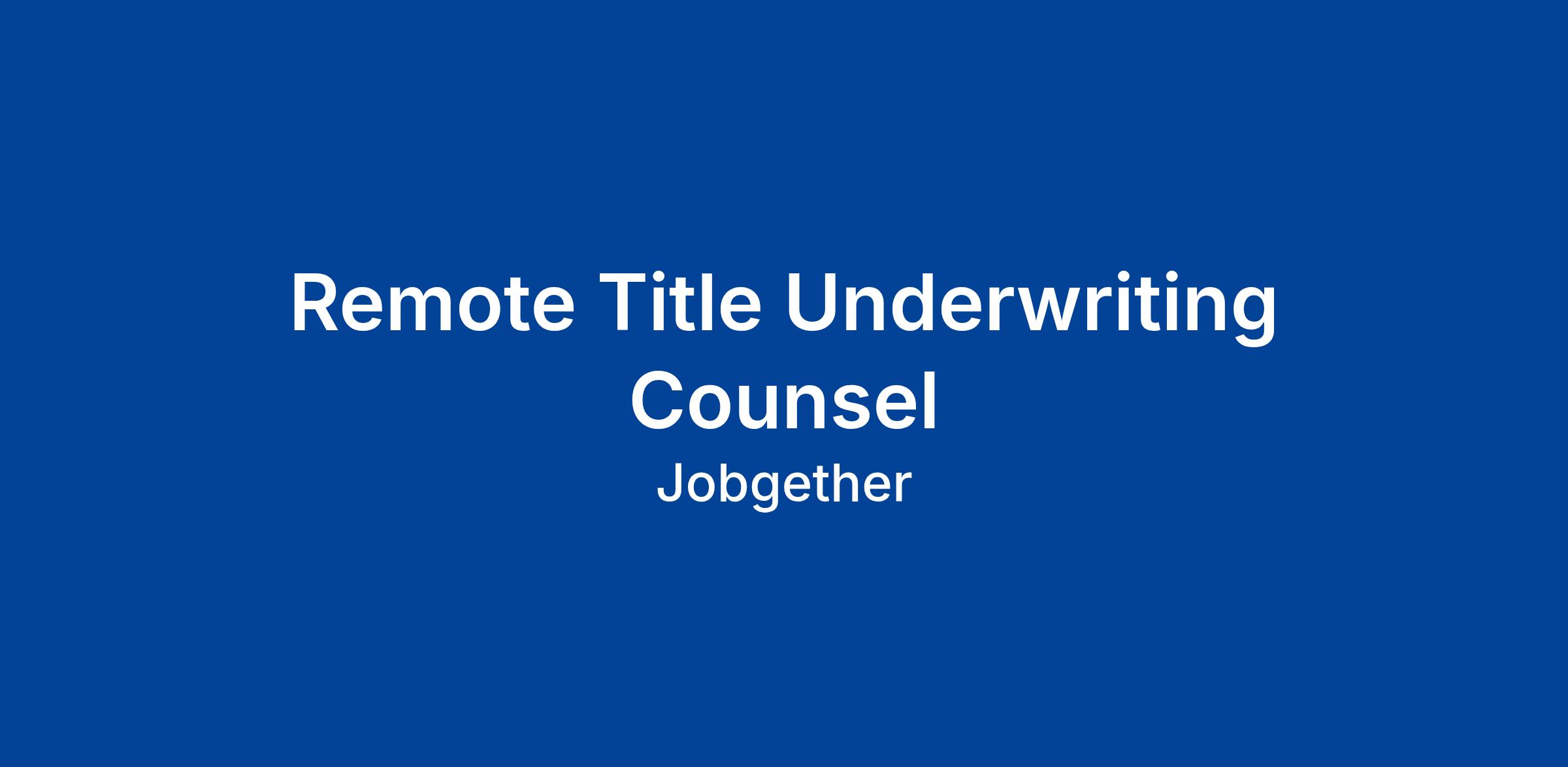 This position is posted by Jobgether on behalf of a partner company. We are currently looking for a Senior Underwriting Counsel - REMOTE. In this role, you will be instrumental in providing underwriting support and guidance on real estate closings, impacting both our customers and internal teams. Your expertise will help streamline processes and enhance collaboration, ensuring operational excellence across our network. We seek a candidate who is proactive, values accountability, and thrives in a dynamic, people-centered environment. Your contributions will not only strengthen existing relationships but also foster new connections in the industry.