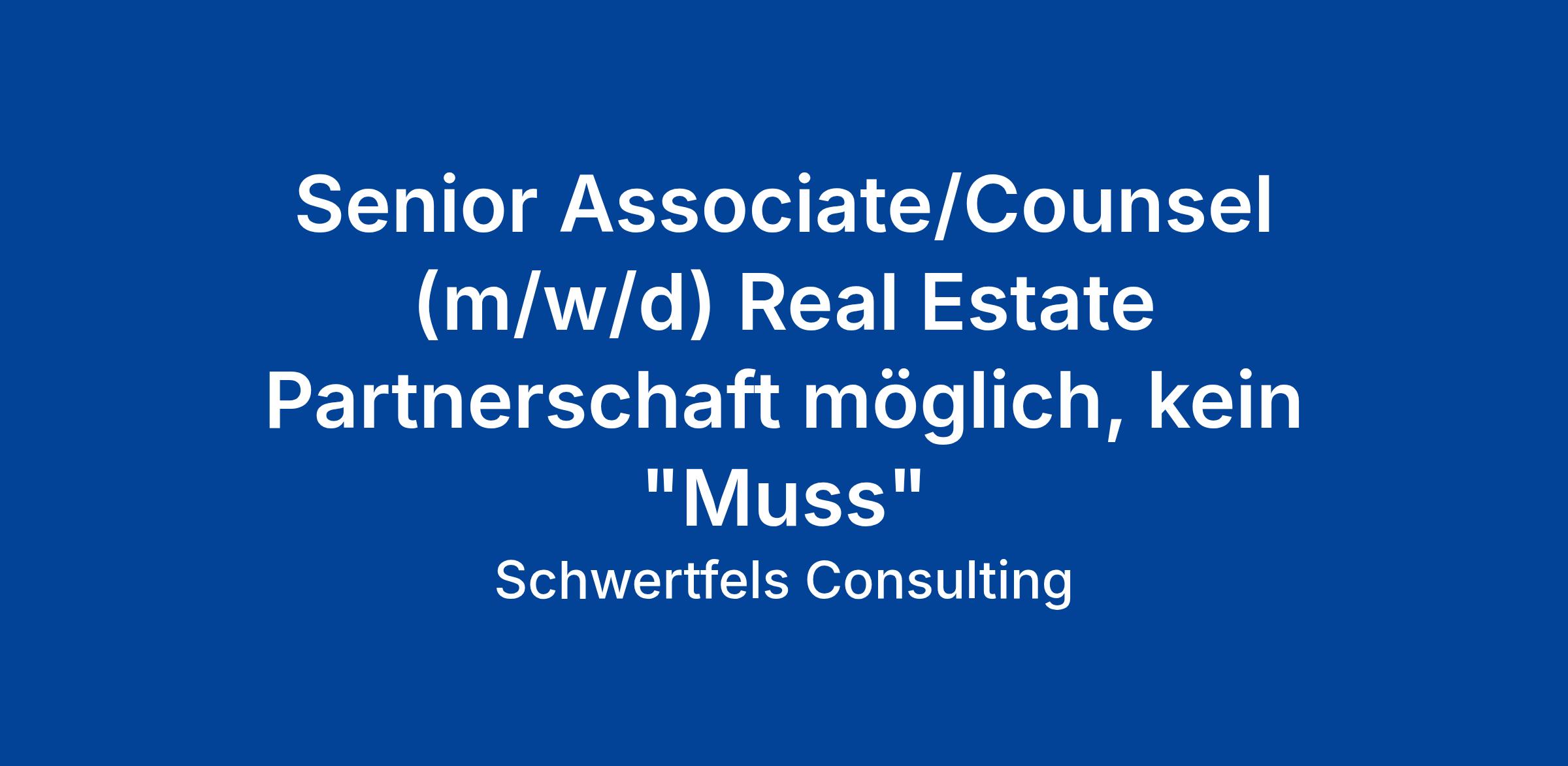 Genau dafür suche ich für ein renommiertes, interdisziplinäres Beratungshaus in Stuttgart eine:n Senior Associate/Counsel (m/w/d) im Immobilienrecht: eine Rolle mit echtem Gestaltungsspielraum, sichtbarer Mandatsverantwortung und einem Umfeld, in dem Entwicklung aktiv fördert. Eine Partnerschaftsperspektive ist realistisch vorhanden, wenn das dein Ziel ist und es ebenso selbstverständlich ist, dass du auch dann voll anerkannt bist, wenn du Partnerschaft bewusst nicht in den Fokus stellst.